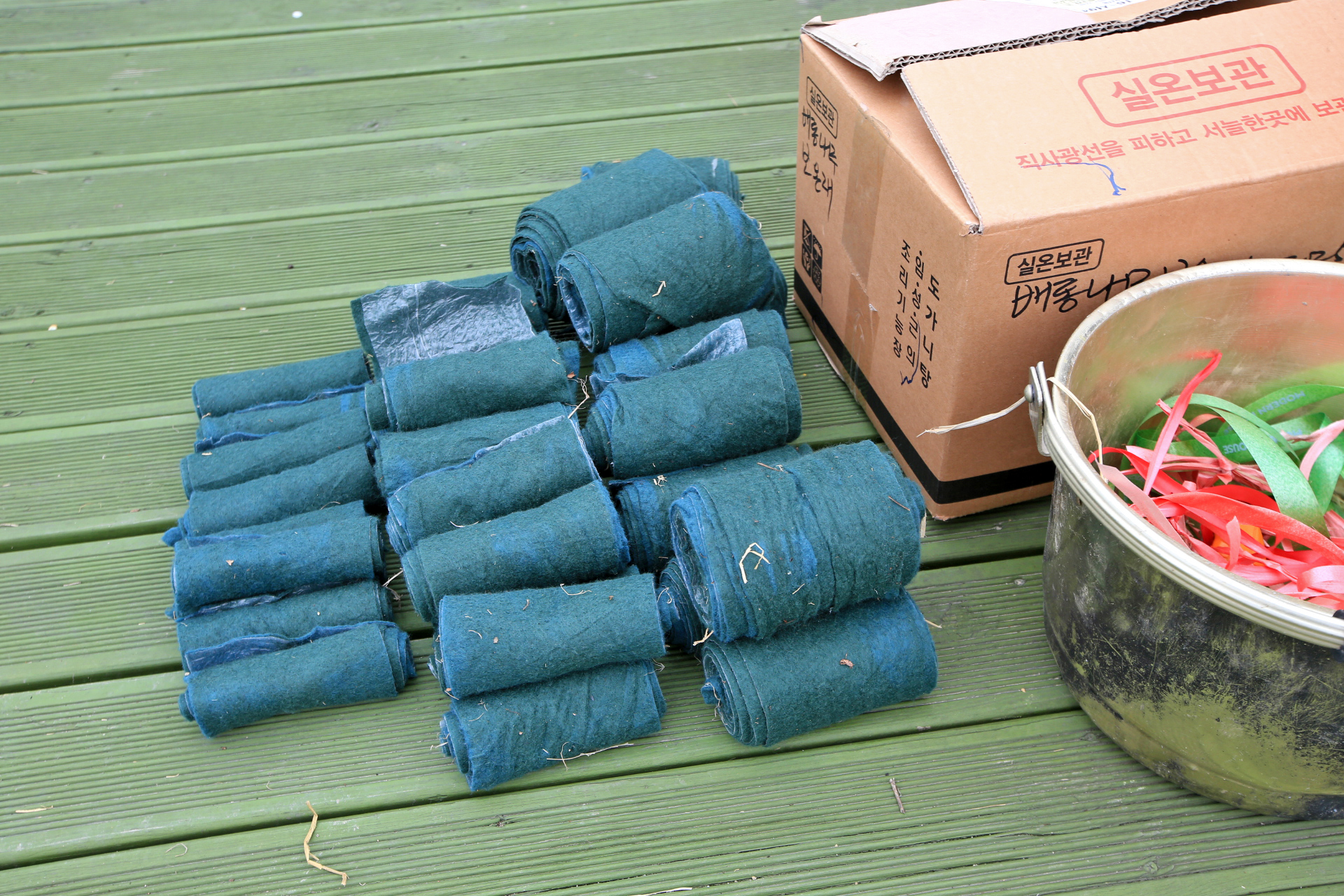 바닥에 깔았던 2년을 사용한 볏짚과 이엉은 뒤꼍에 쌓아 놓고, 보온재는 감아서 다락방에 보관해 두었다.