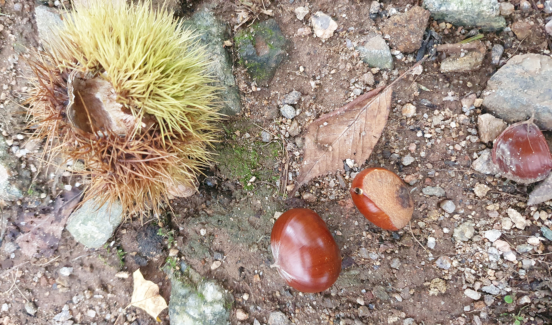 이른 아침에 운동 삼아서 강서농산물도매시장을 다녀왔다. 가는 길에 수명산근린공원을 지나갔는데 귀룽나무가 있던 부근에서 알밤을 주웠는데 하나는 벌레가 먹었다.