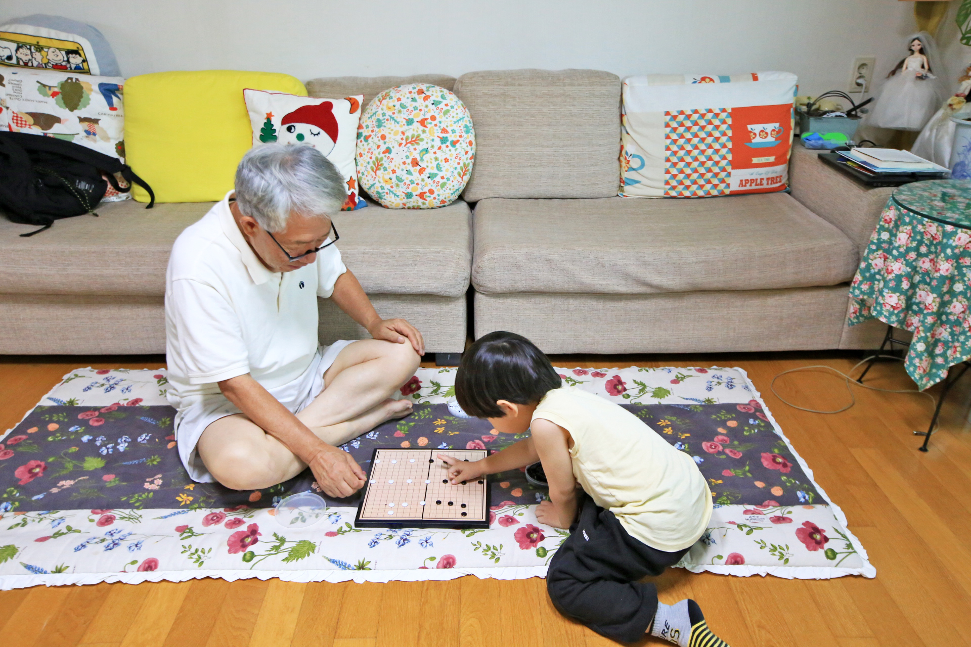 Seung과는 바둑알로 알까기를 하였다. 바둑알에 자석이 들어 있어서 손가락으로 튕겨도 생각처럼 움직이지를 않는다. 가끔 봐달라면 물려주기를 주고받기도 한다.