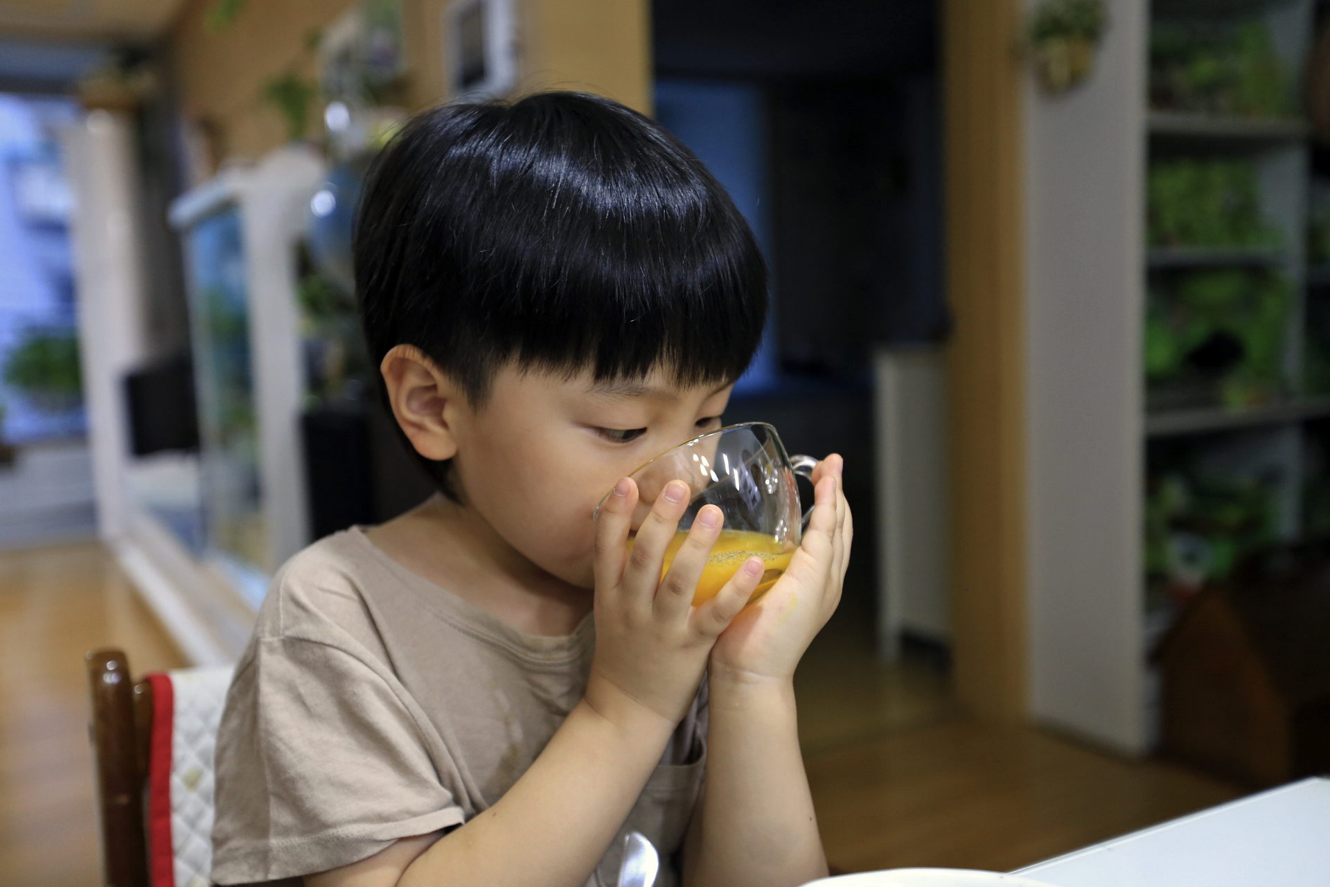유치원에서 다도를 배웠다며 주스를 이렇게 마신다.