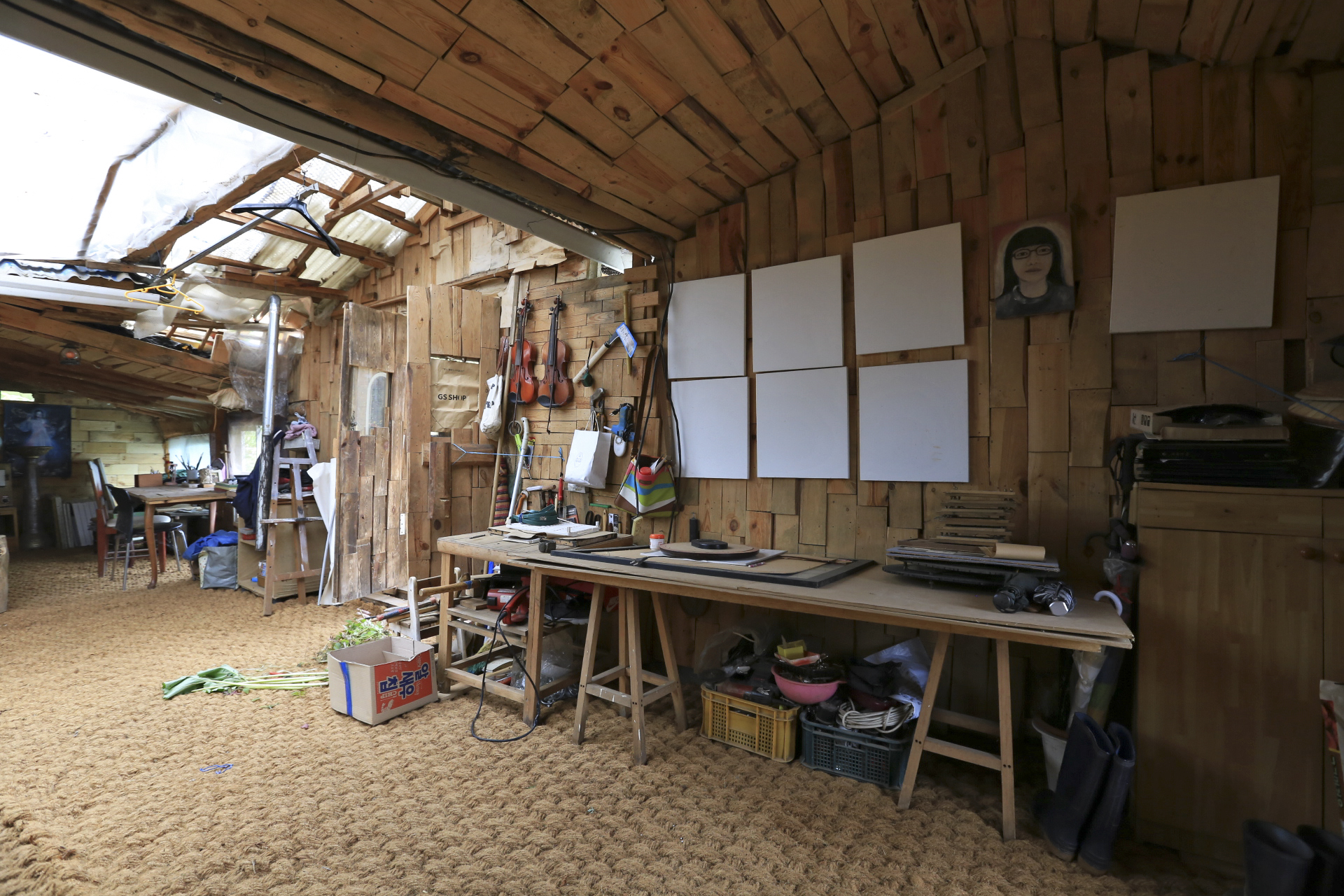 기존 벽체와 기둥을 철거하고 새로 기둥을 설치하셨단다. 기둥을 그냥 세우기도 만만치 않은 무게 일 텐데....