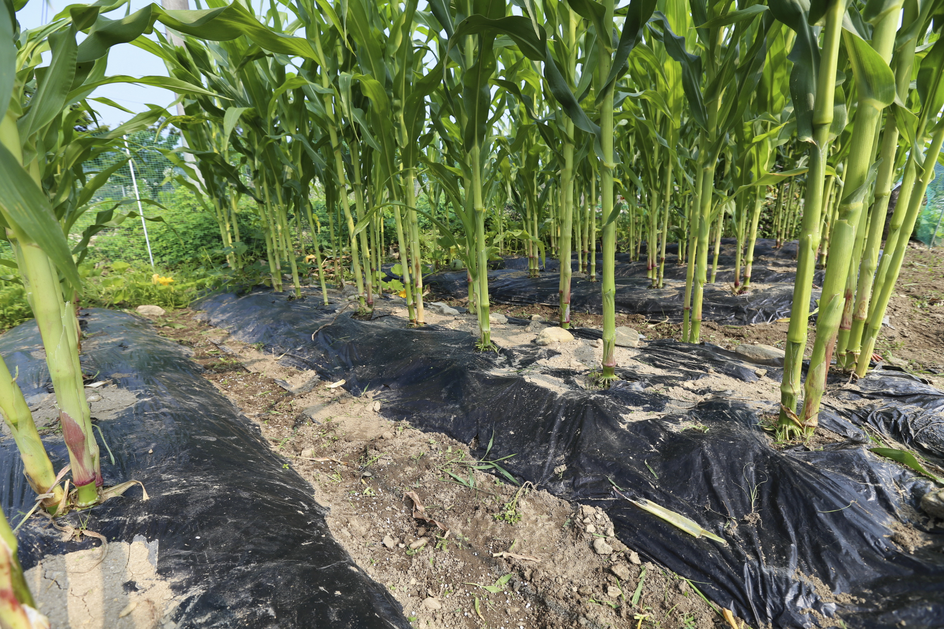 옥수수 밭고랑에 난 풀을 뽑아주었다. 어제 유튜브에서 옥수수 키우는 동영상에서 본대로 옥수숫대의 하부에 뿌리가 보이는 줄기는 하부의 잎을 4~5개 제거해 주었다. 뿌리가 보이지 않는 키가 작은 것은 잎을 2~3개만 제거해 주었다. 그리고 고랑에는 복합비료를 뿌려주었다.