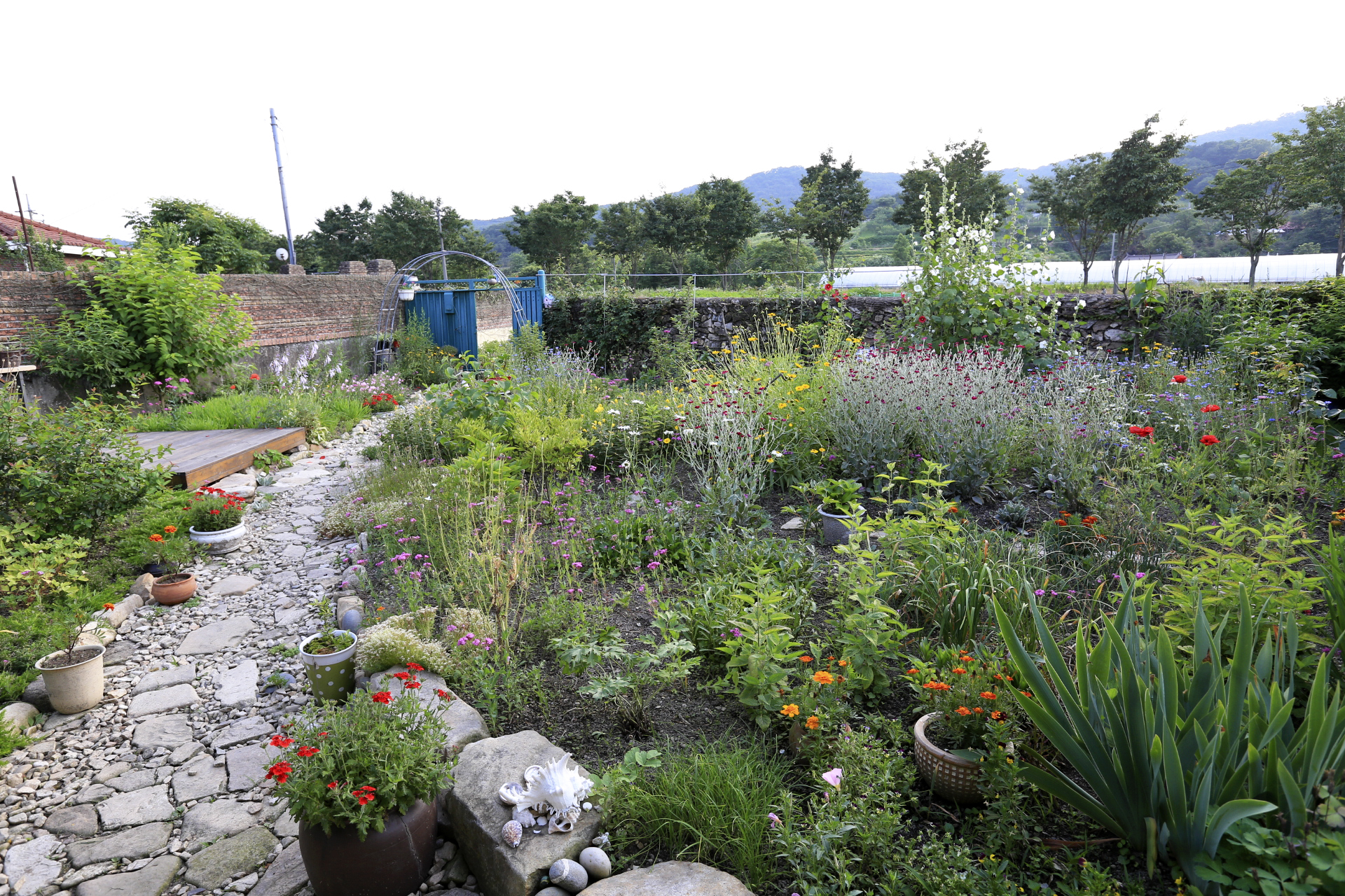 본채 알에 떡 버티고 있던 샤스타데이지 한 포기는 꽃이 모두 져서 꽃대를 제거하였다. 키가 큰 샤스타데이지를 제거하니 뒷부분이 잘 보여 새로운 분위기이다.