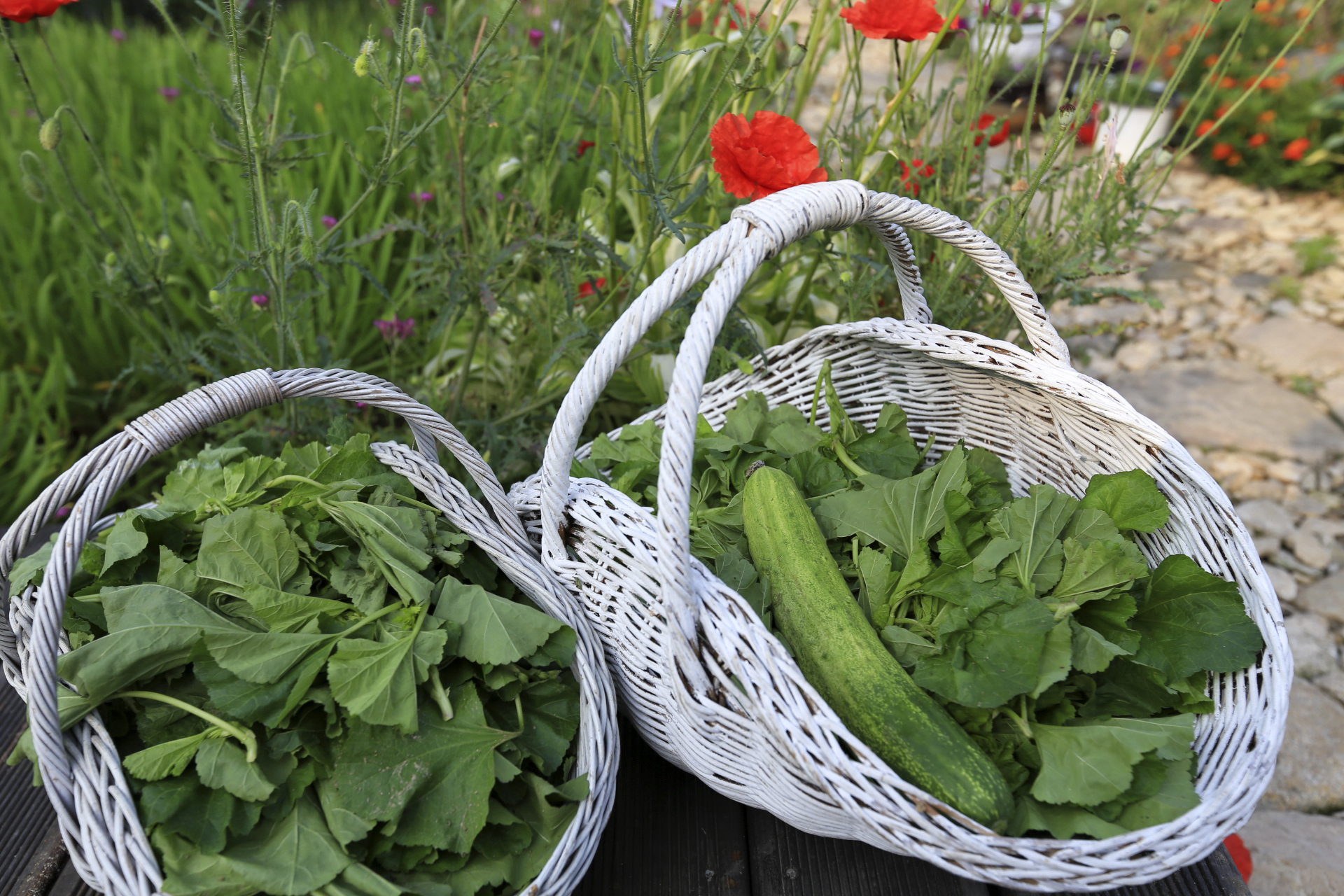 누님네 밭에서 자란 아욱과 텃밭에서 자란 오이.