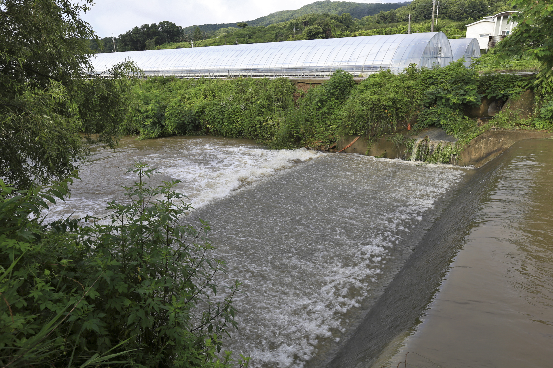 장마철이 시작된 첫날보다는 덜했지만 엊저녁에 비가 많이 내렸다. 아침에 일어나니 물내려가는 소리가 나기에 성북천으로 물 구경을 나갔다. 전번에는 비가 많이 내리기는 하였지만 오랜만에 와서 땅으로 스며들었는지 비는 덜 내린 이번이 물이 많이 내려간다. 물도 더 탁해졌고....