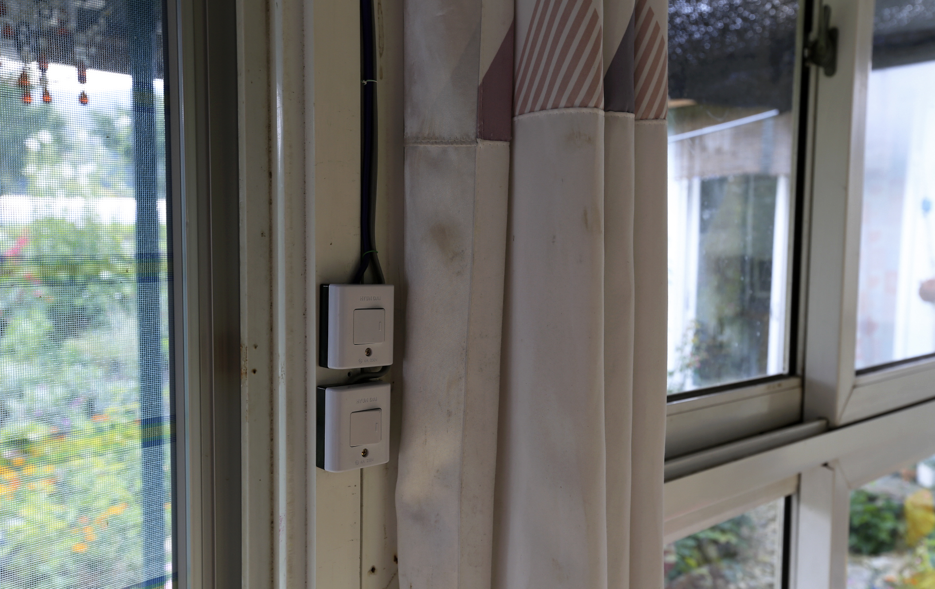 담장 밑에 붙여서 노출 배관한 전선관은 정향나무 부근부터 본채 데크까지는 매설하고, 데크 창틀 측면을 따라서 데크 천장으로 연결하였다.