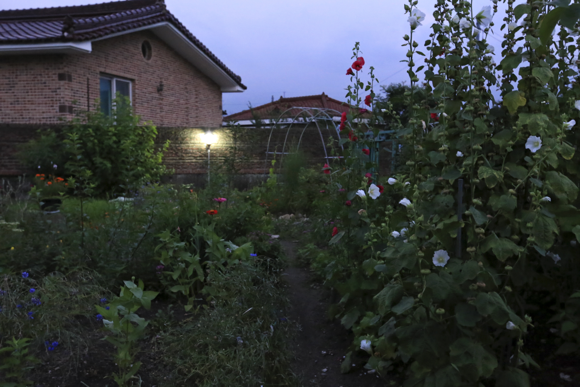 어두워질 무렵 아내가 알려준 대로 대문 밖에 가보니 흰색의 꽃양귀꽃이 피어있다. 처음 본 흰색 꽃양귀비인데 워낙 쉽게 지는 꽃이라 내일 아침에는 볼 수 없을지 모르겠다.