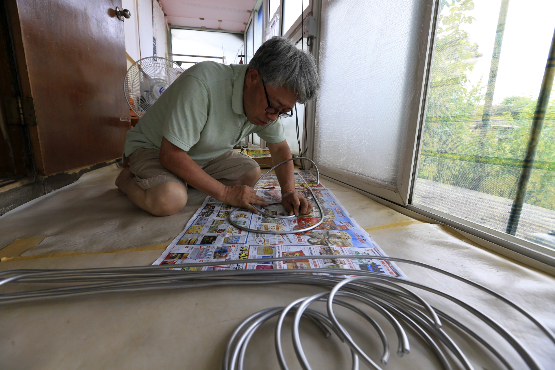 아내가 집 앞 도로에서 보면 집안이 훤히 들여다보이니 돌담 상부에 넝쿨장미 지지대를 설치하여 넝쿨장미를 올리자고 한다. 1.8m짜리 농작물 지지대를 이용하여 만들었더니 너무 단순하다며 꼬불꼬불하게 장식을 만들어 달자며 스케치를 해 준다. 집에 6mm 분재용 알미늄선이 있기에 샘플을 만들어 보았더니 약하다. 인터넷에서 강도와 설치가 쉬운 폭 12mm*두께 1.2T 정도의 띠철을 찾아보았으나 없다. 10mm 이하의 아연도 파이프를 찾아보았으나 스테인리스와 구리 제품만 있다. 작업성은 나쁘더라도 굵은 철선을 구입하려고 하였으나 아연도금 제품으로는 지름 3.2mm(#10번선) 철선이 가장 굵기에 주문하였다. 주문한 3.2mm철선이 도착하여 샘플을 만들어 보았더니 6mm 알루미늄선보다 강도가 좀 나은 편인데 가늘어서 장식으로 가치가 없다. 다시 분재용 알루미늄선으로는 가장 굵은 8mm를 주문하여 본을 뜬 종이 위에 놓고 만들었다.