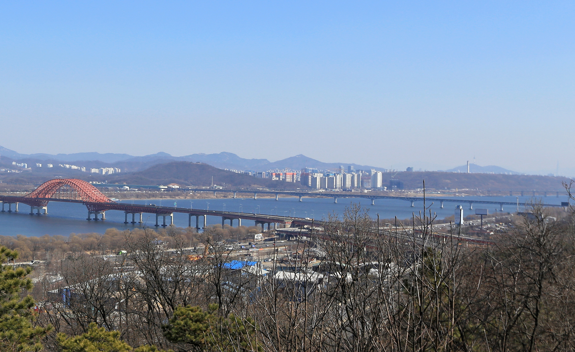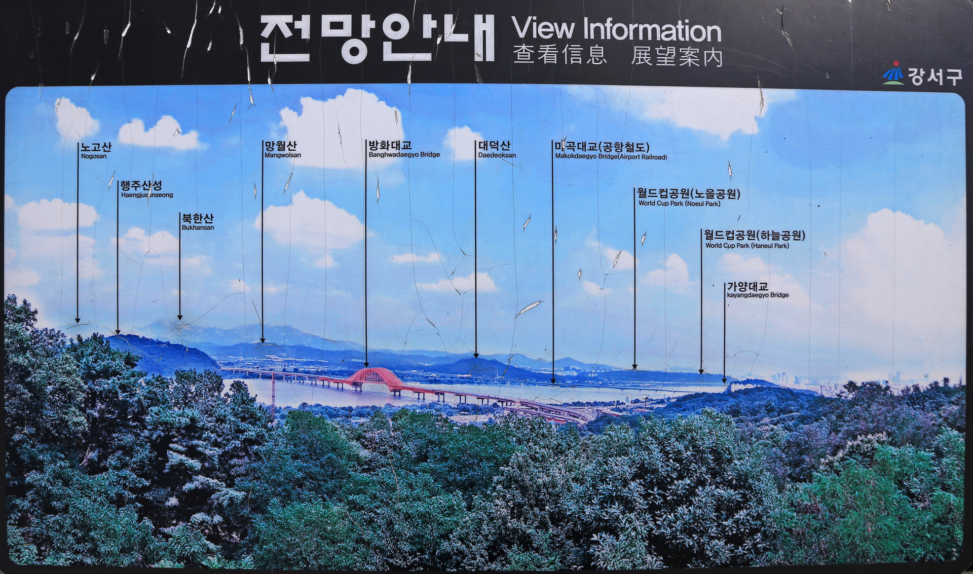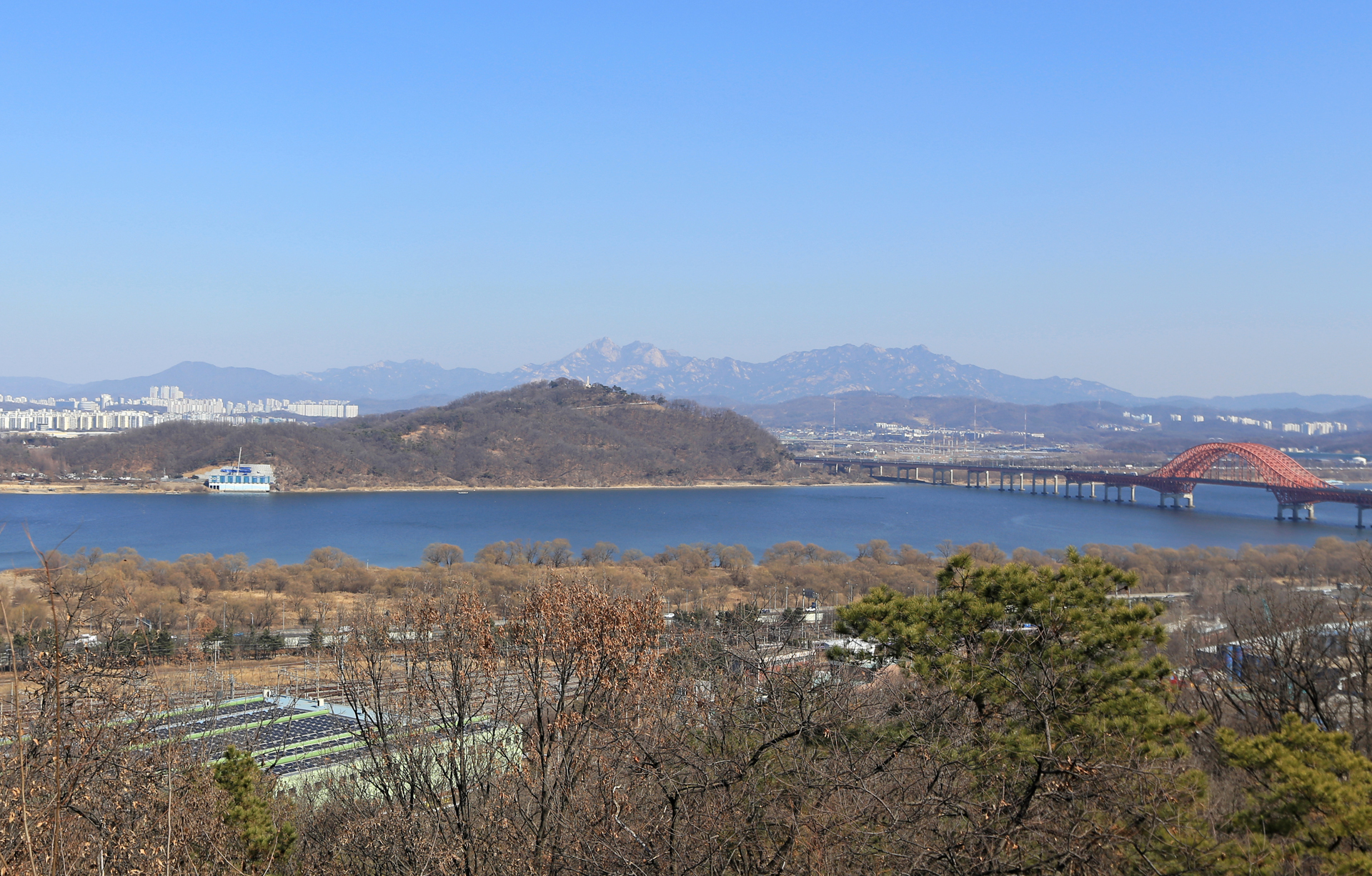행주산성, 북한산, 방화대교, 공항철도 마곡대교, 월드컵공원과 남산과 남산N타워도 보인다.