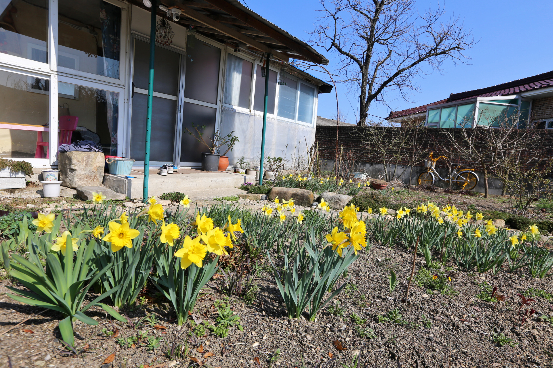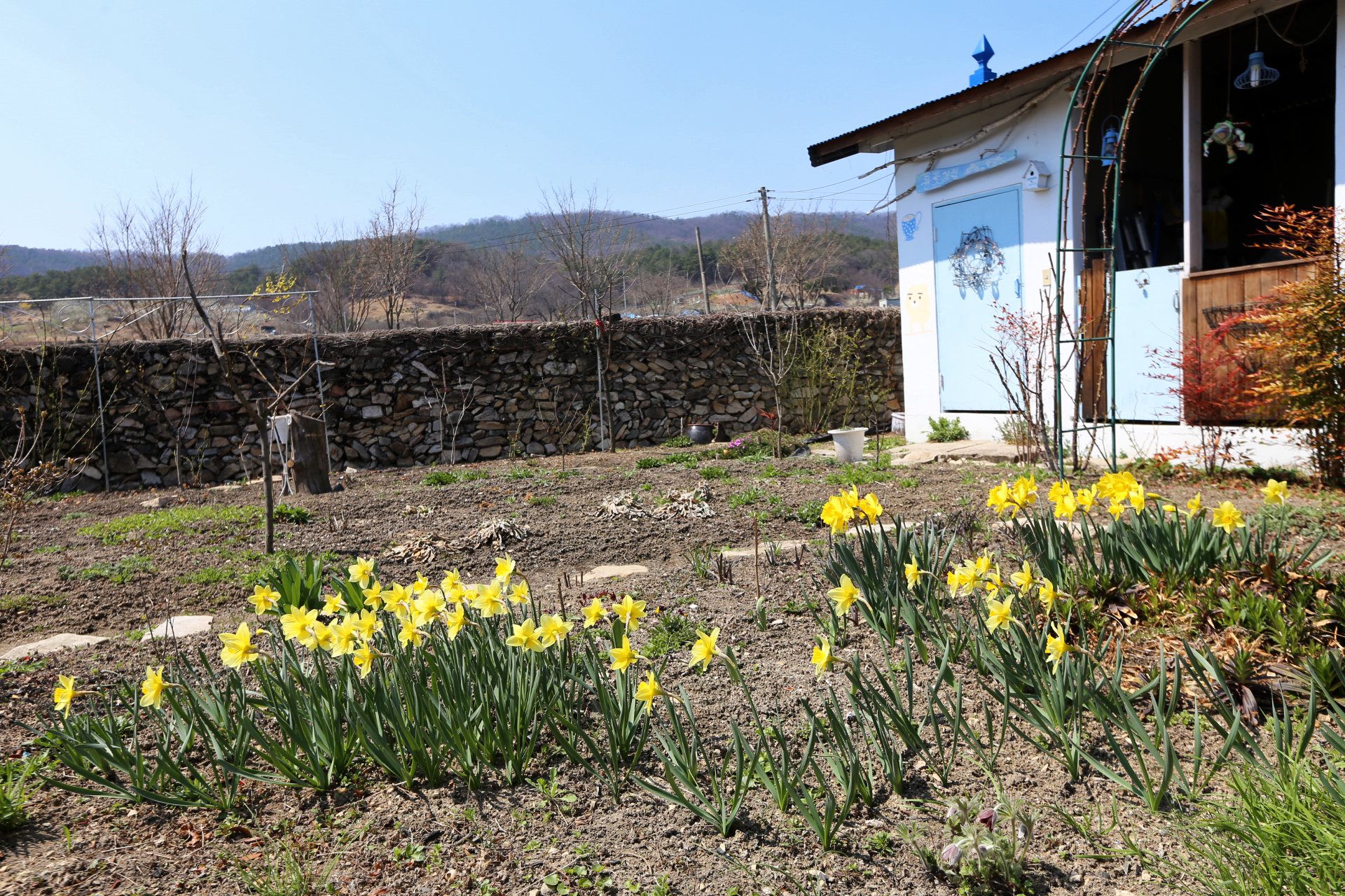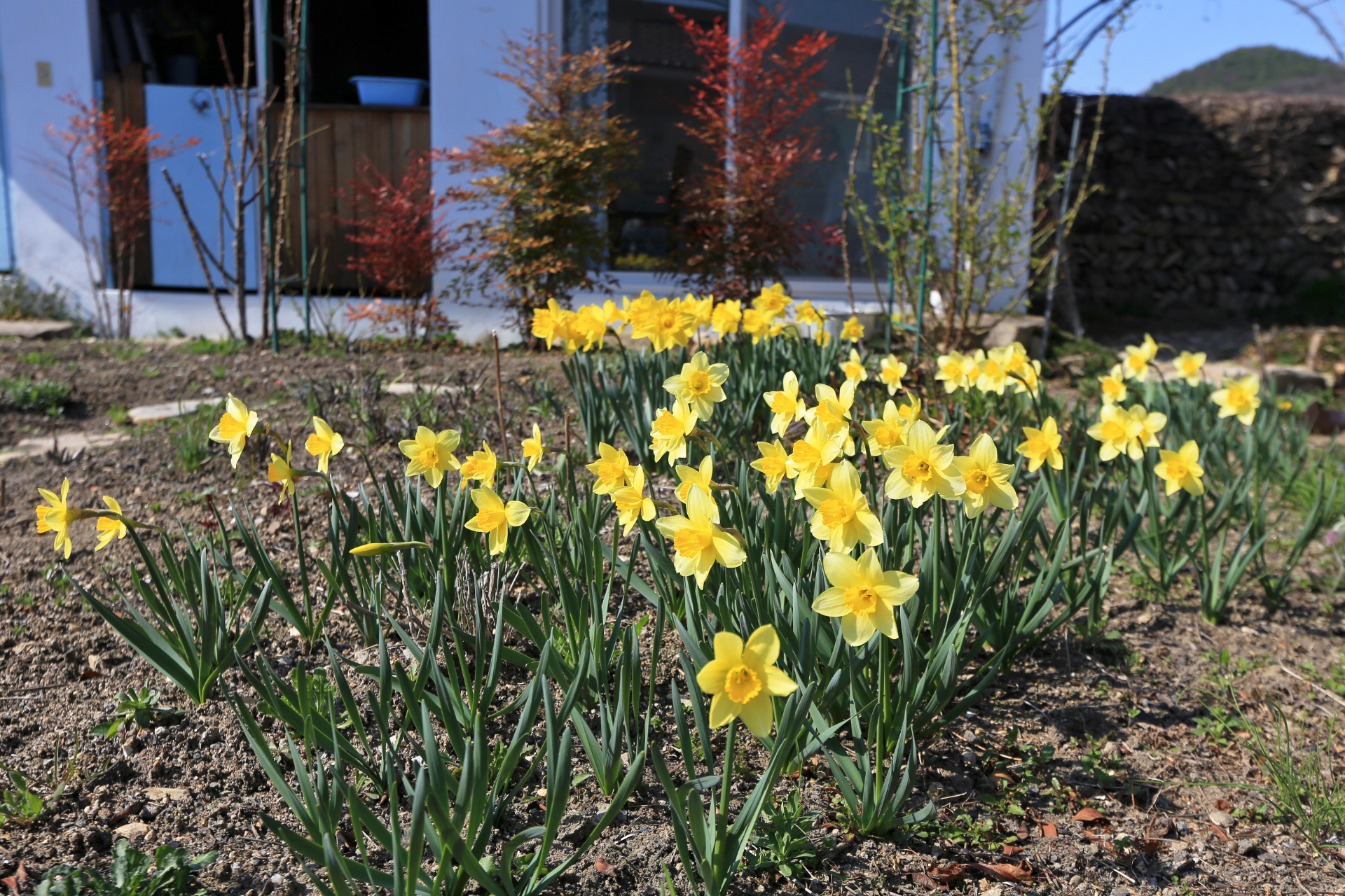 해가 뜨기 전에는 서리가 내려서인지 수선화가 고개를 푹 숙이고 있다가 기온이 올라가면 서서히 고개를 든다.