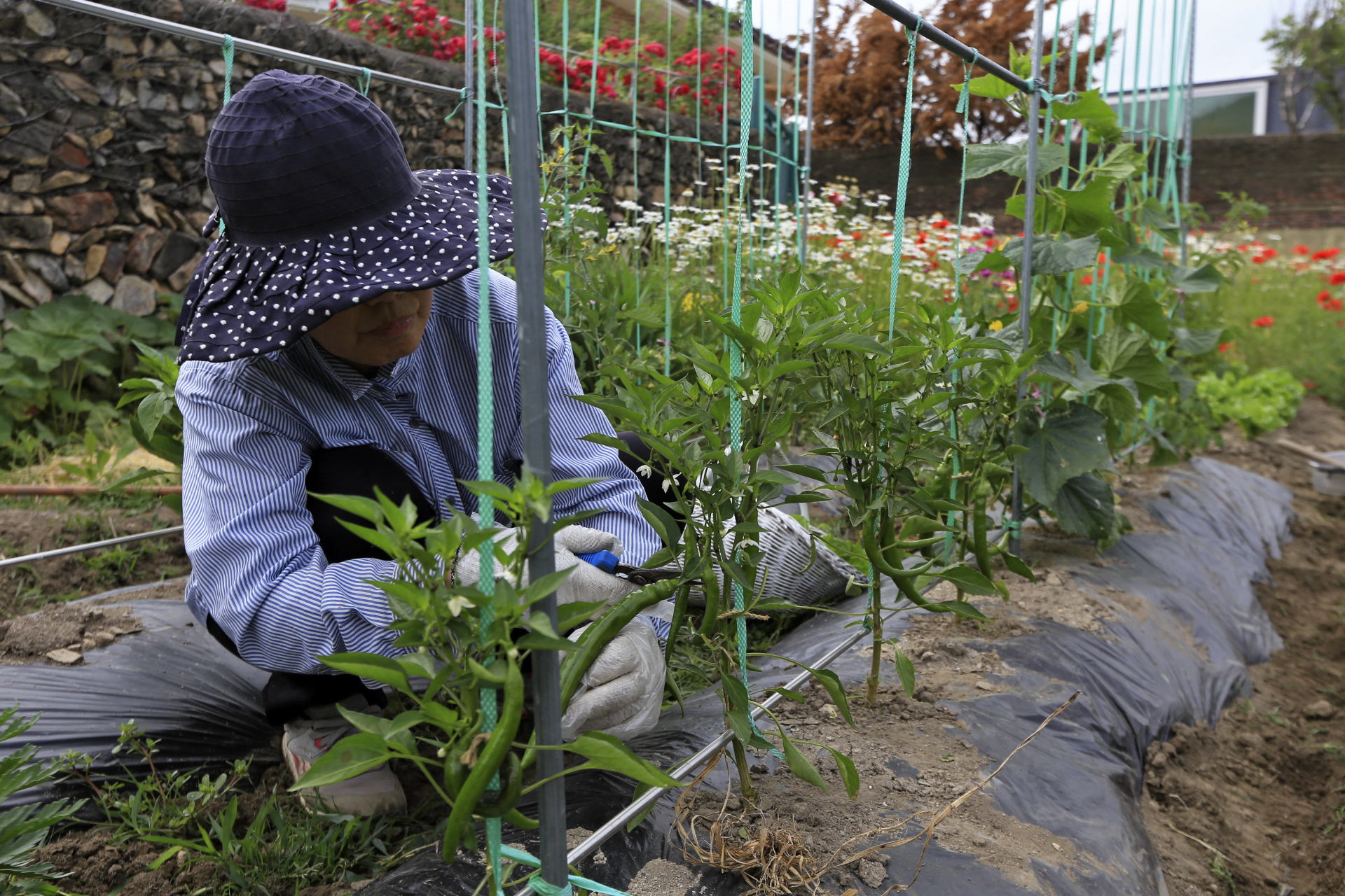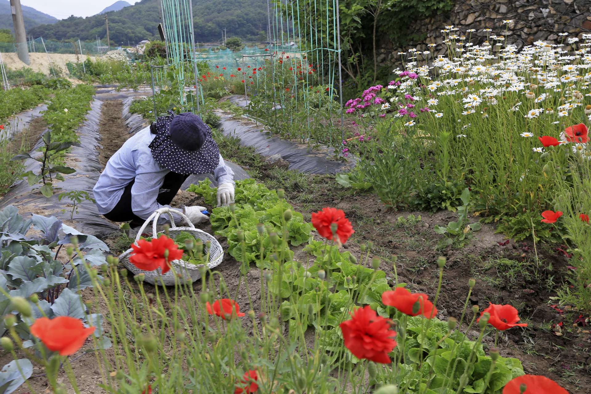 아내는 오전에는 나와 함께 텃밭에서 잡초를 제거하고 오후에는 꽃밭에 물을 주었다.