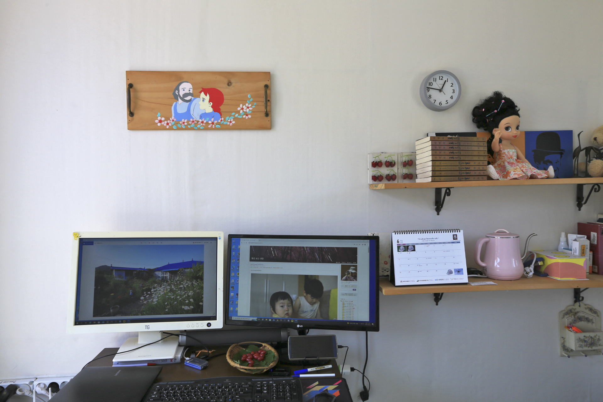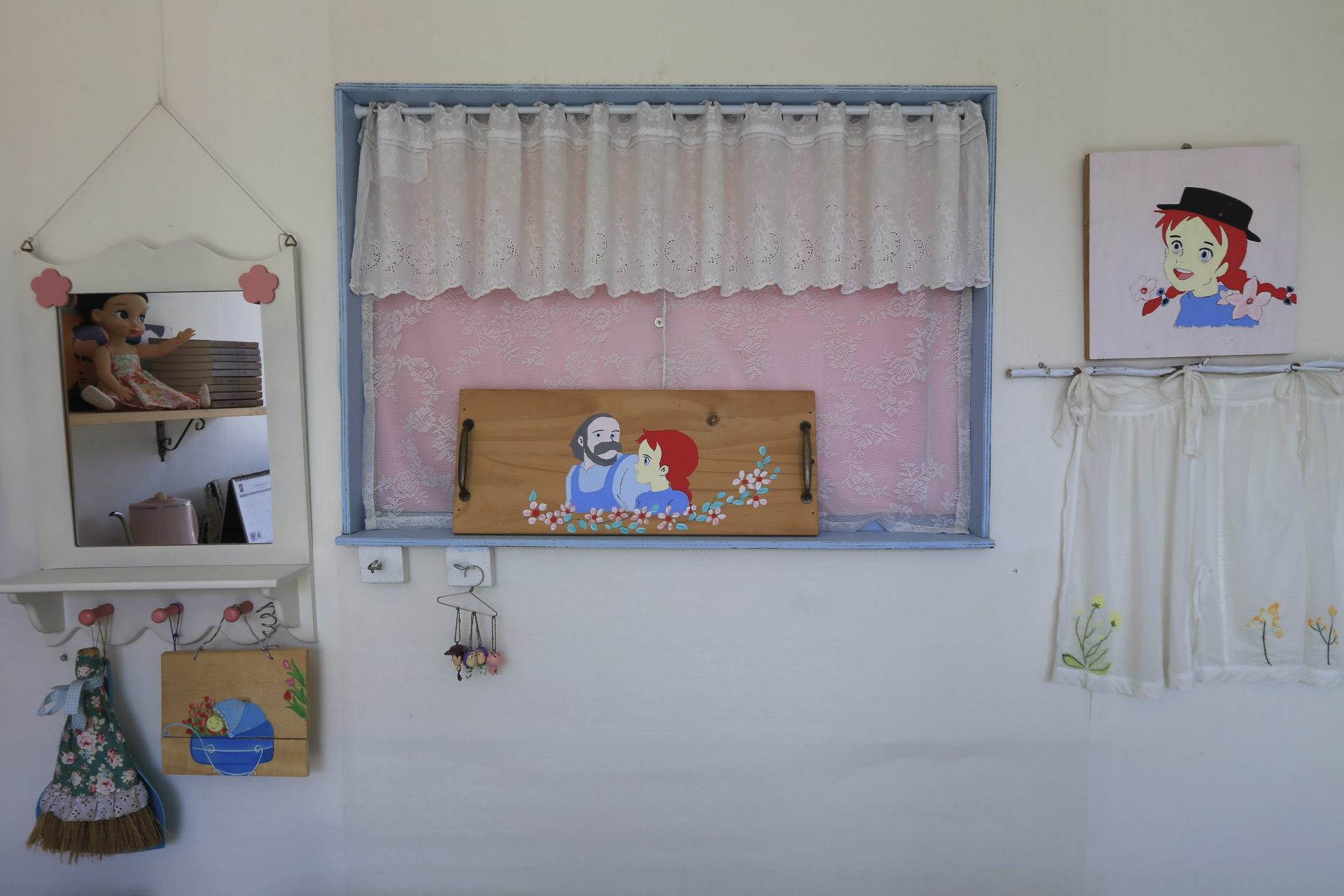 보온재로 창문을 밀봉하였을 때 창틀에 세워두었던 메튜 아저씨와 빨강머리 앤 그림을 벽에 걸었다.