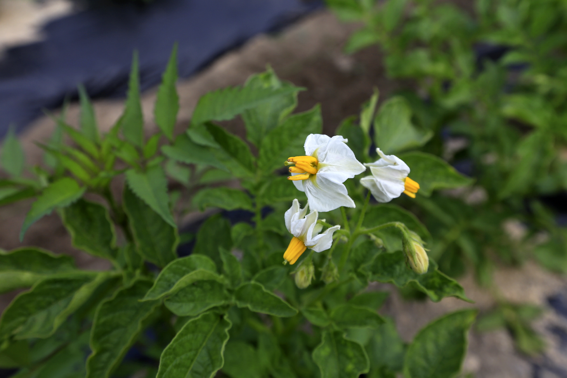 심는 시기를 한 달 가량 지나서 늦게 심은 감자인데 꽃이 피었다.