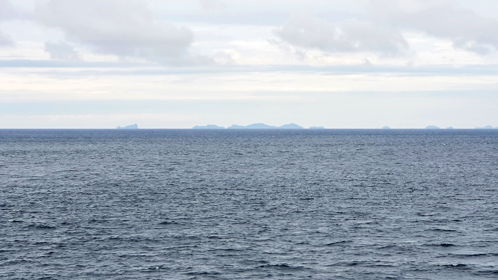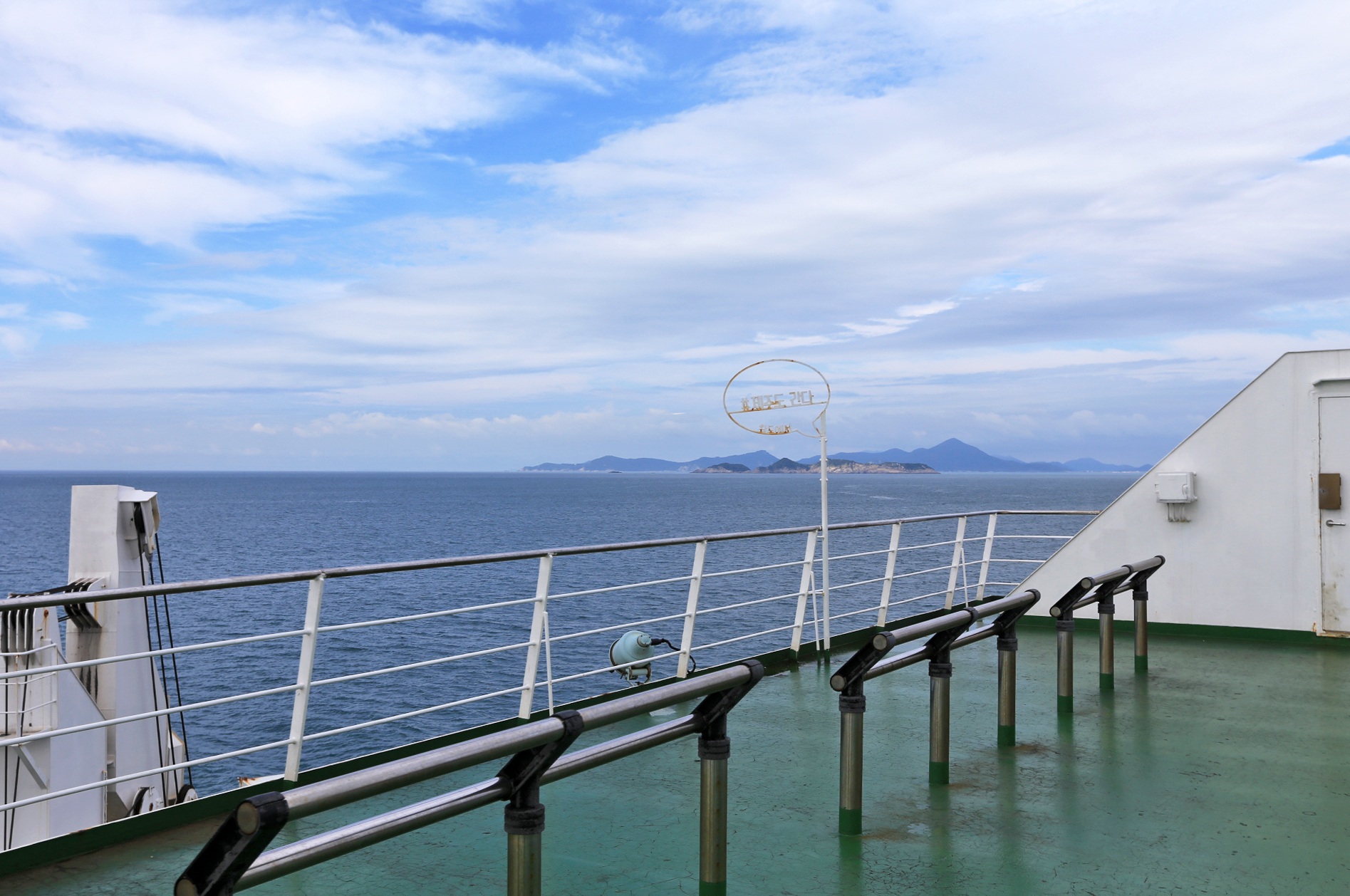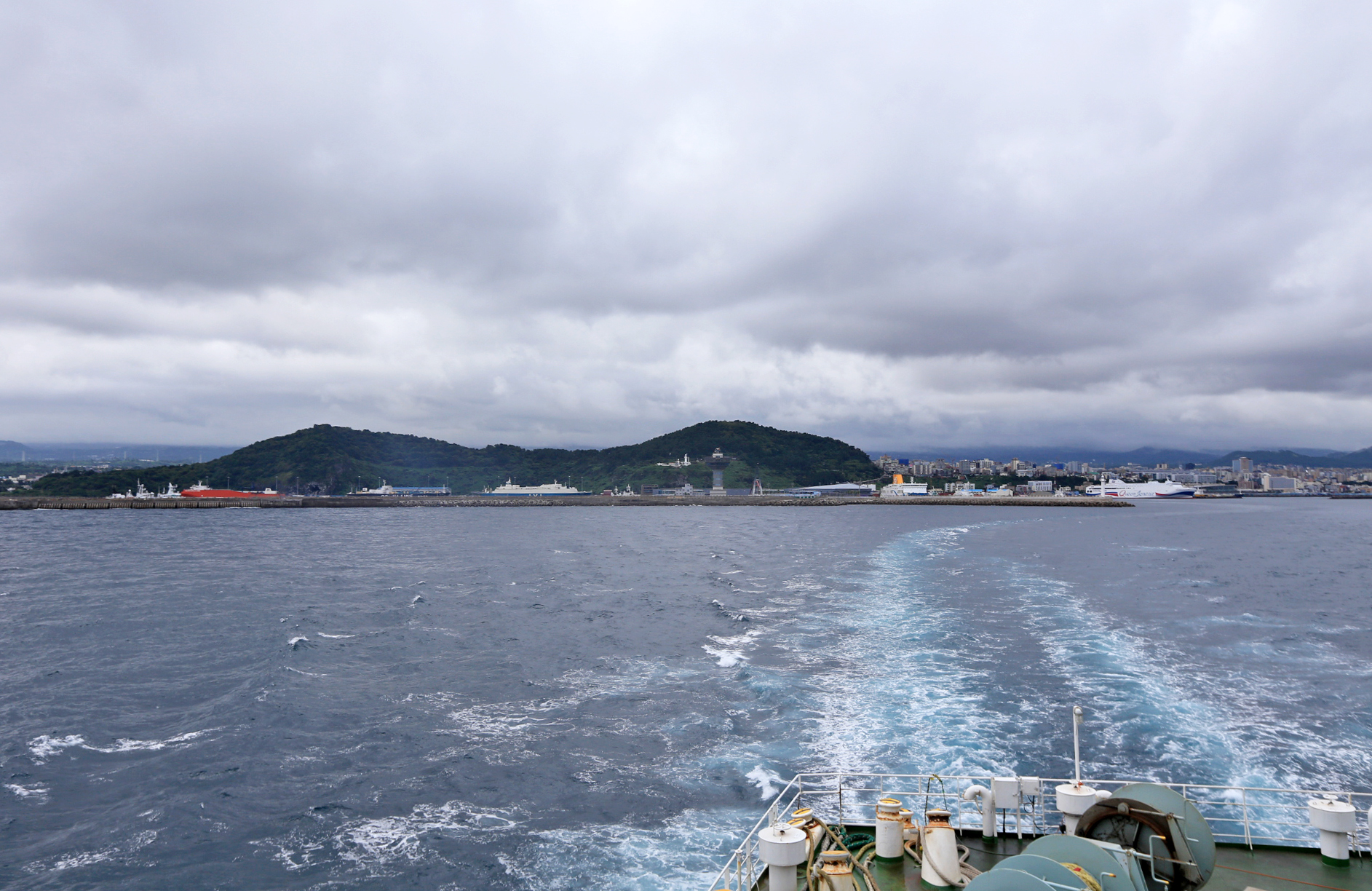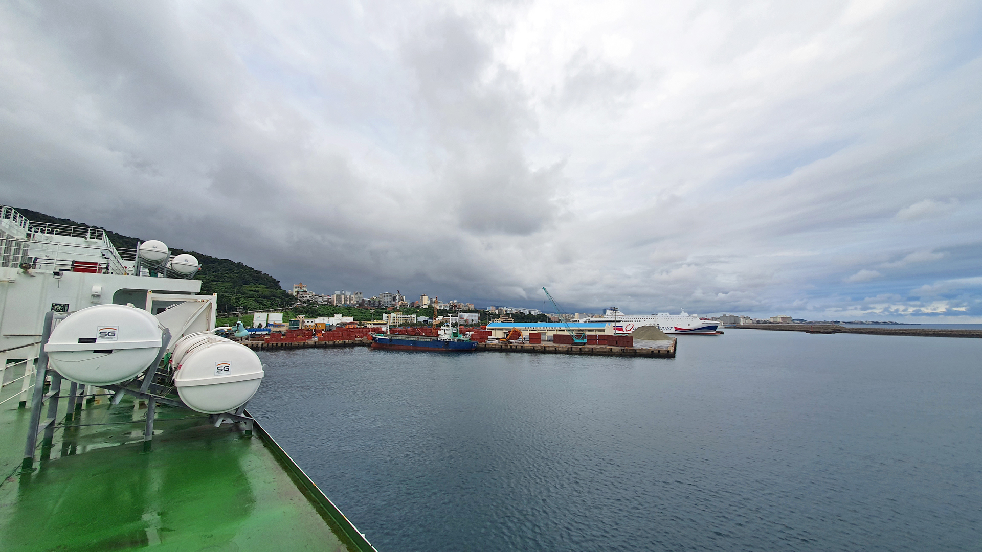 배정받은 선실에 우산과 생수를 놓아두고 바로 갑판으로 나왔다. 비가 그치고 하늘이 개기 시작하는데 한라산은 여전히 구름 속에 숨어있다.