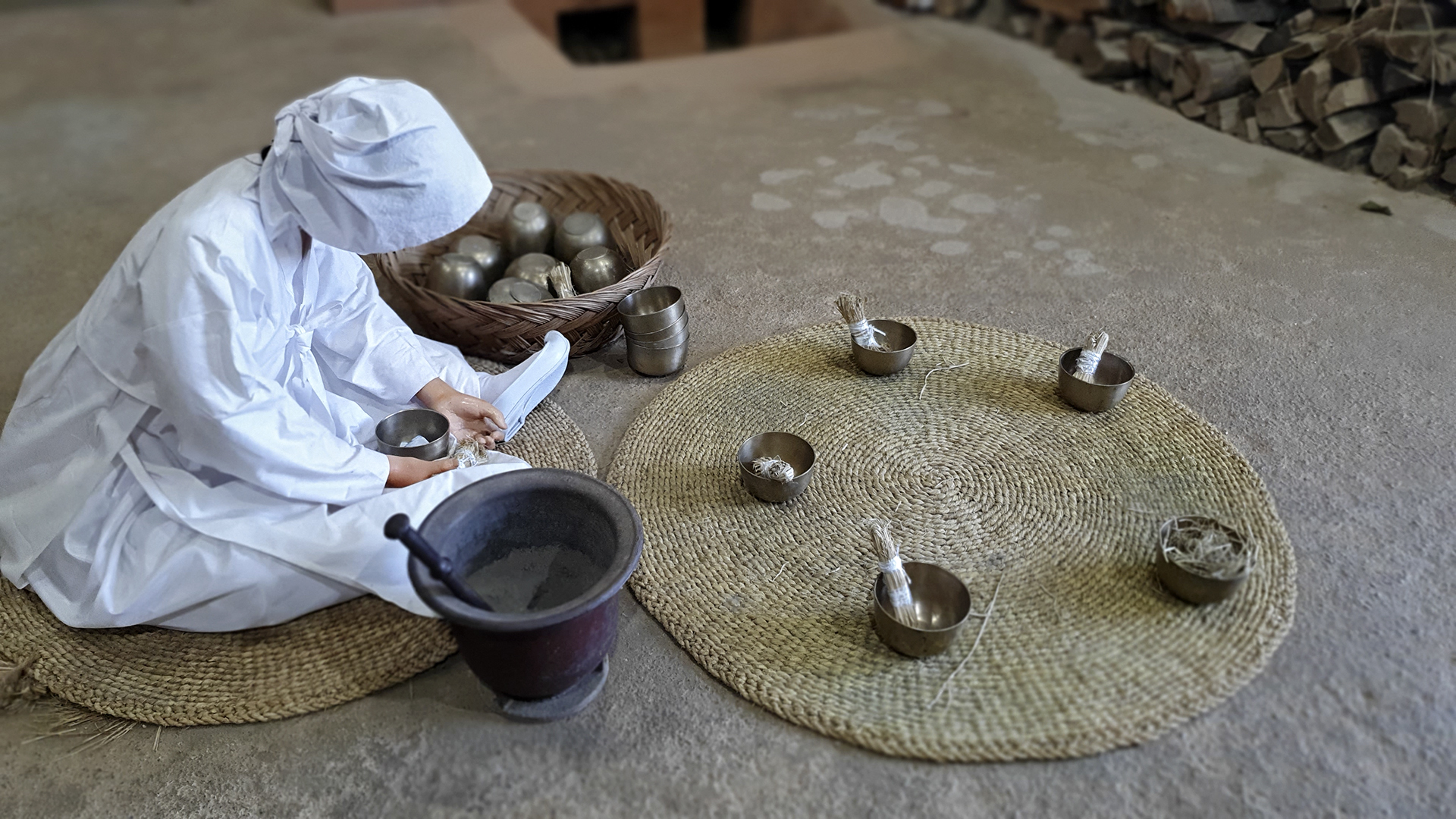 내아에 들어가니 곱게 한복을 차려입은 아주머니 한 분이 마루에 앉아 계신다. 구경해도 돼요? 하고 말을 튼 다음에 마루에 앉았다. 차림새로 관광객이 아니라는 것은 알았다. 놋그릇 닦는 체험을 하신다고 한다. 나도 어려서 닦아보기는 하였지만 한 번 해보는 정도였을 뿐이다. 지푸라기를 여러번 접은 것과 화로에 담겨있는 재를 보니 옛 생각이 난다. 예전에 설 명절 준비할 때 추위에 놋그릇 닦느라고 고생했다고 하신다. 이런저런 이야기 중에 내가 처음 낙안읍성에 왔을 때 주민들이 모여서 화투 치던 생각이 난다는 이야기도 하였다. 오늘 낙안읍성에 와서 핸드폰 찾아주려고 한 것과 놋그릇 체험하시는 아주머니와 대화한 것은 오래 기억에 남을 것 같다.