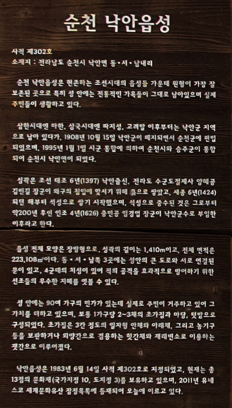 벌교에서 일을 마치고 내일 일이 시작되는 장흥으로 떠나기 전에 일부러 오기도 힘든 곳이니 낙안읍성을 다녀가기로 하였다. 12년 전(20100404)에 다녀왔으니 오랜만이다. 우선 성곽을 따라서 한 바퀴 돌고 골목길을 둘러보았다. 뭔가 달라지기는 한 것 같은데 잘 모르겠다.