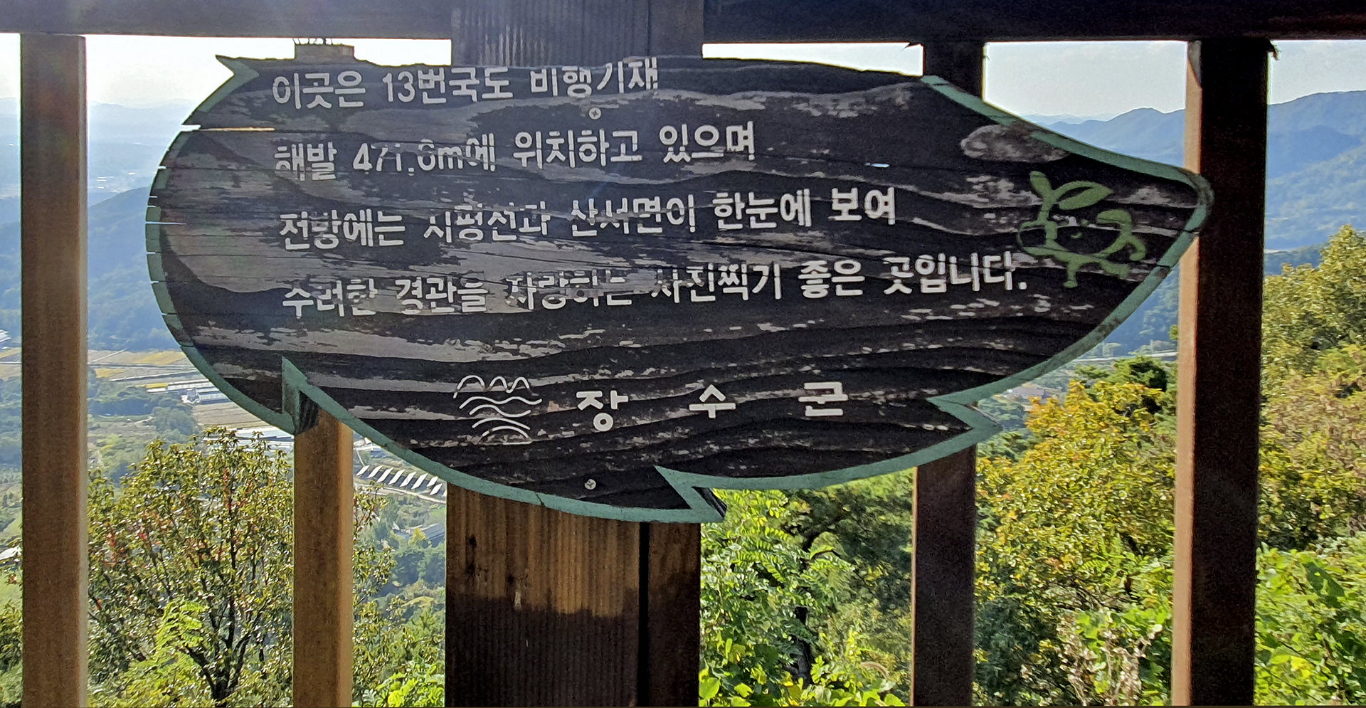 임실에서 일을 마치고 내일 일이 시작되는 장수로 가는 길에 비행기고개를 넘었다. 이름에서 연상 되듯이 고개를 오르는 길이 한참 높게 보였는데 고갯마루 부근의 전망이 훤한 곳에 쉼터가 있다.