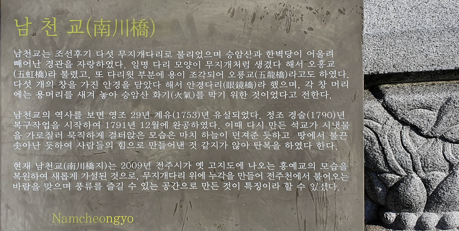 향교를 둘러보고 남부시장 주차장에서 일행과 만나기로 약속한 시간까지 남천교 마루에 앉아서 시간을 보냈다.