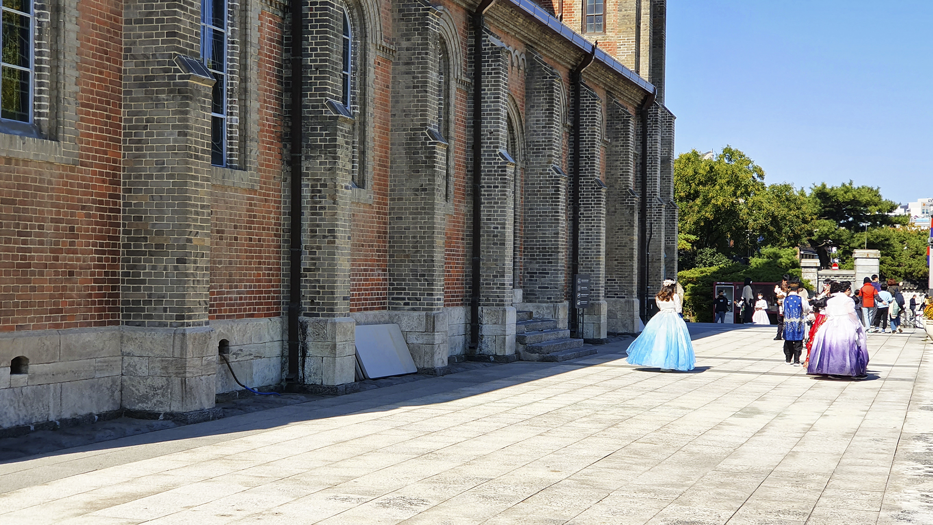 마땅히 돌아다닐 곳이 없어서 향교 방향으로 가는 길에 한복을 대여하는 가게가 있기에 사진을 찍으려고 하니 제지한다. 글쎄...