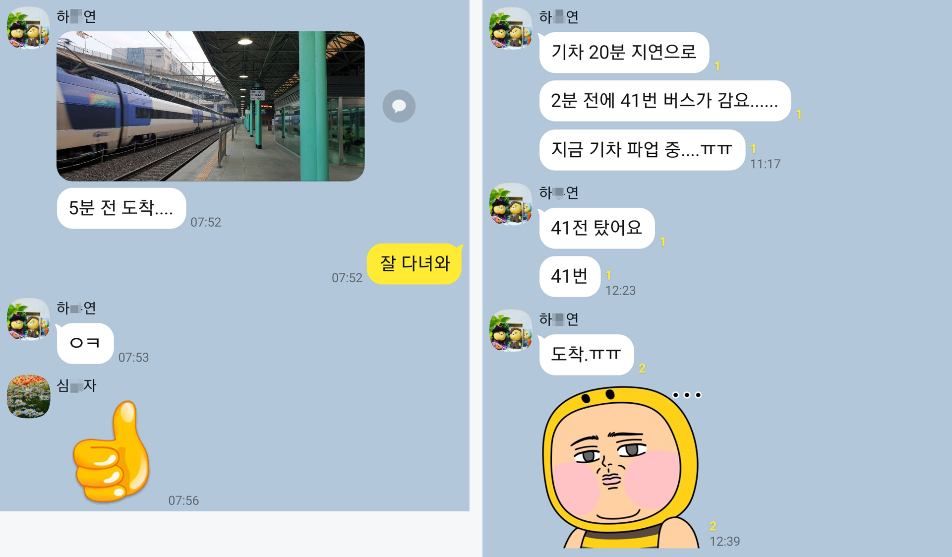 딸은 출발하기 직전까지도 집안일에서 벗어나지 못하다가 바쁘게 집을 나선다.