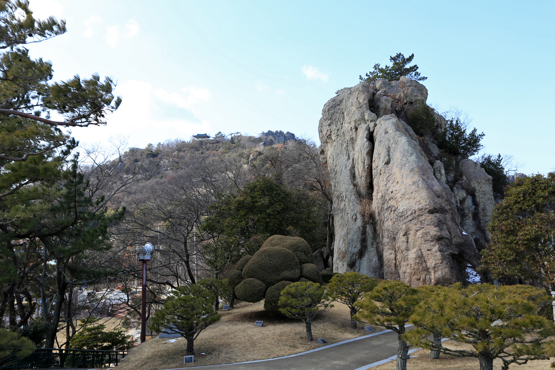 1970년대 말에 건설회사에 근무할 때 현장설명에 참석하기 위하여 목포로 출장을 간 것이 나의 첫 목포여행이었다. 남는 시간을 이용하여 시내버스를 타고 목포시내를 한 바퀴 돌았는데 운전기사가 삼학도 정류장에 버스를 세우더니 승객들에게 전화 좀 하고 오겠다며 양해를 구하고 한참 만에 돌아와서 출발하였던 기억이 있다. 삼학도가 섬이라 생각했는데 아니어서 웬일인가 했었다. 그리고 목포의 상징인 유달산도 물론 다녀왔었다. 아내와 함께 한 이번 여행길에는 유달산은 오르지 못하더라도 노적봉은 다녀오자고 하였다. 목포근대역사관 1관을 둘러보고 차로 유달산 주차장까지 가려고 카카오맵에서 찾았더니 가까운 거리라서 걸어가라고 안내한다. 그러고 보니 목포근대역사관 1관 뒷산이다.