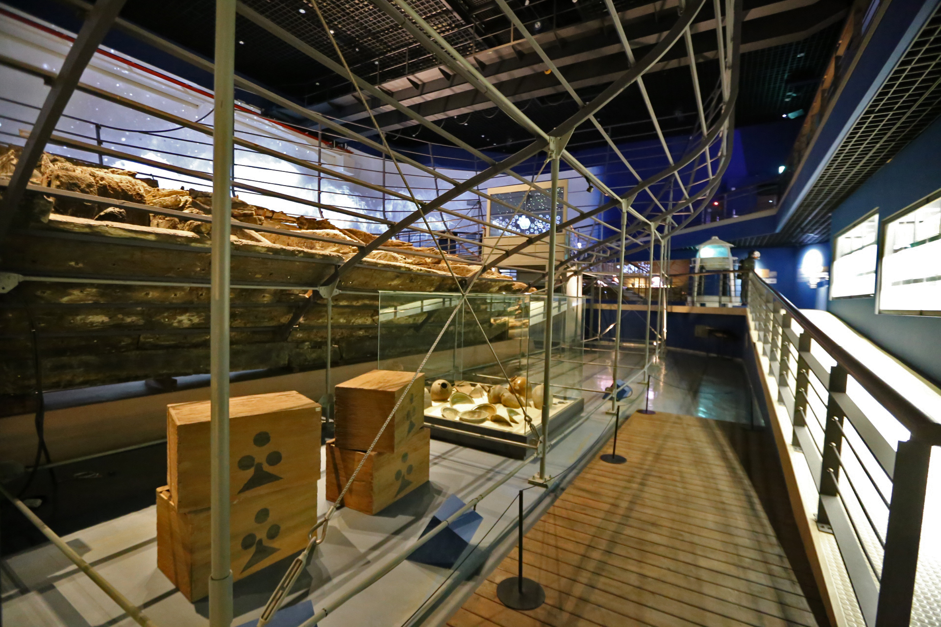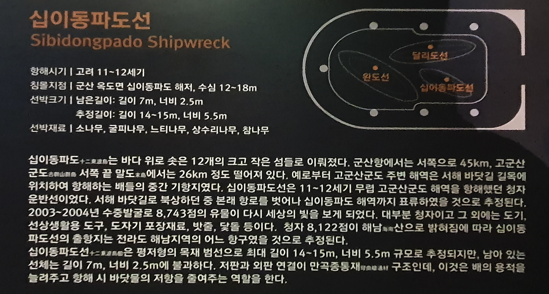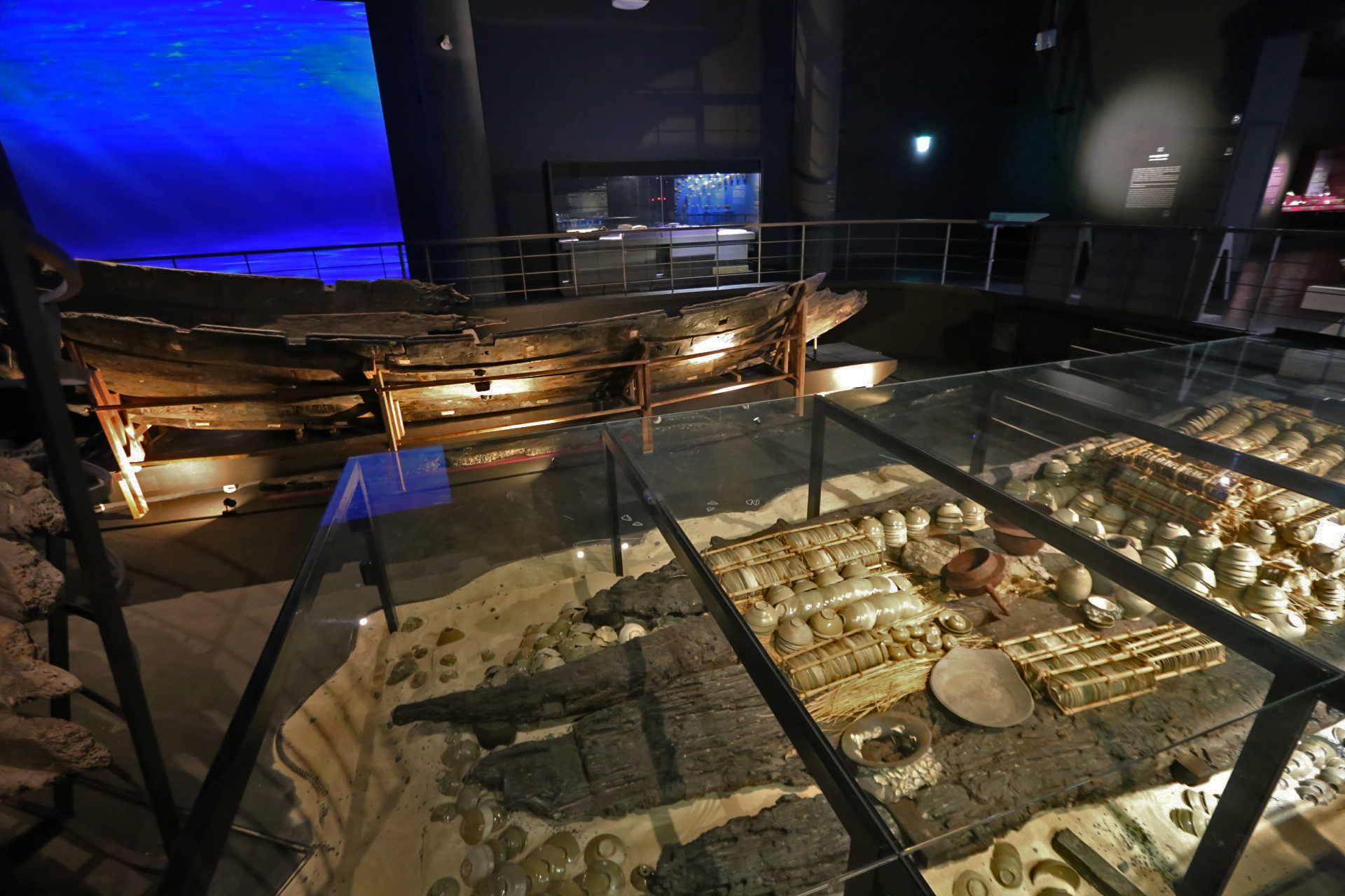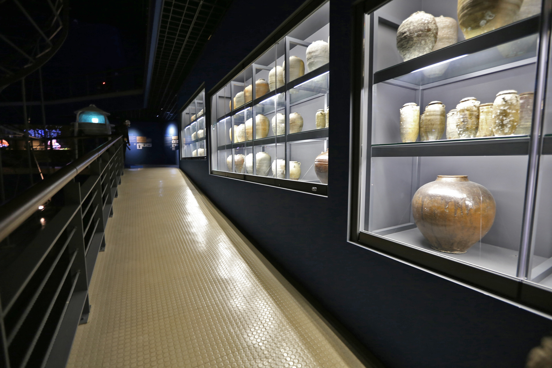 신안선 관람은 마치 아내와 나에게만 보여주기 위해서 특별히 문을 열어준 것이 아닌가 하는 생각을 하면서 관람하였다. 신안선 전시실에 들어가니 조금 후에 메인 전등이 켜진 듯하다. 바로 전에 있는 전시실에서 직원분이 신안선 전시실을 가리키며 들어가 보라고 했는데 워낙 관람객이 없으니 필요 할 때만 전등을 켜는지도 모르겠다. 하여튼 둘이서만 호젓하게 관람하였다.
