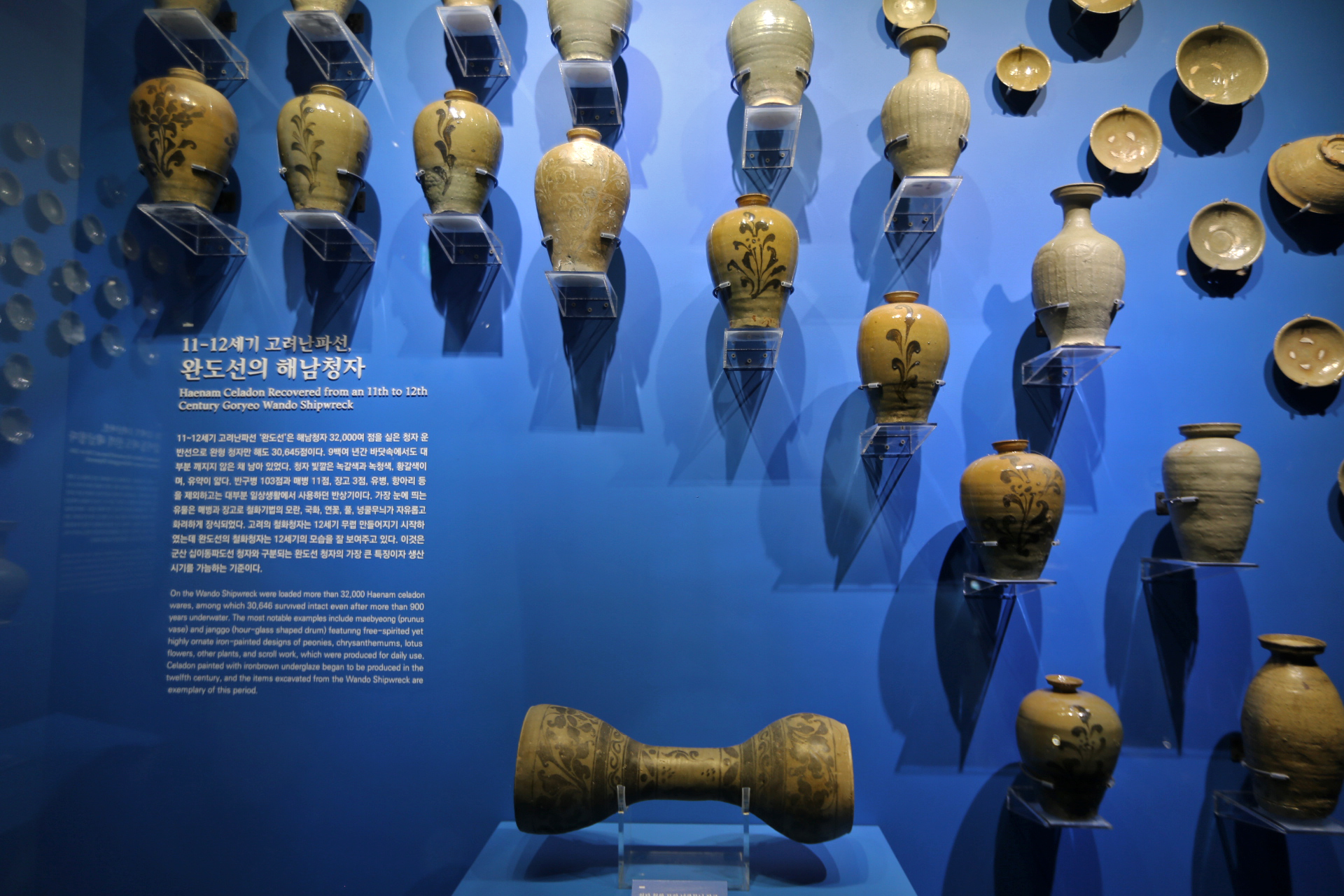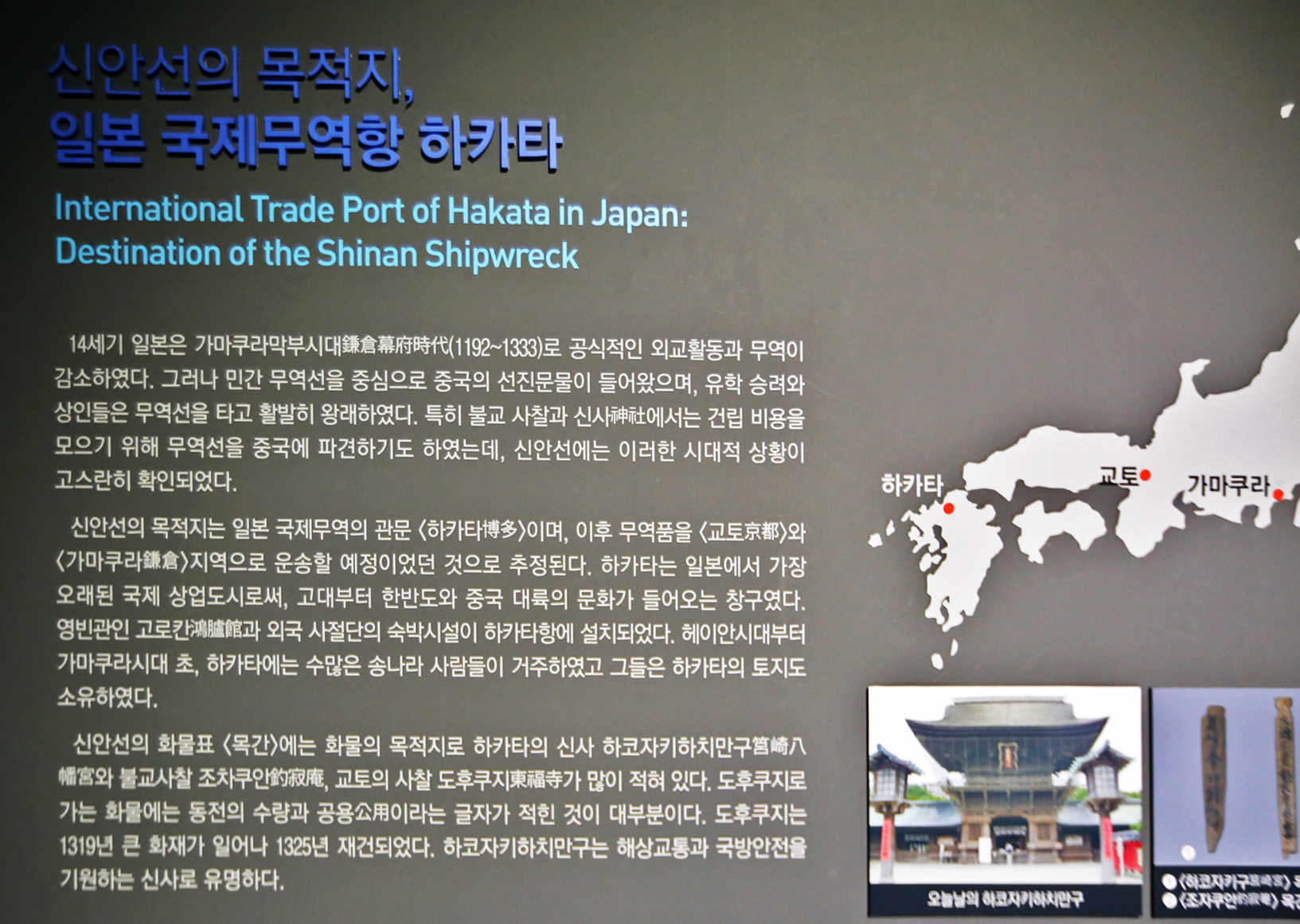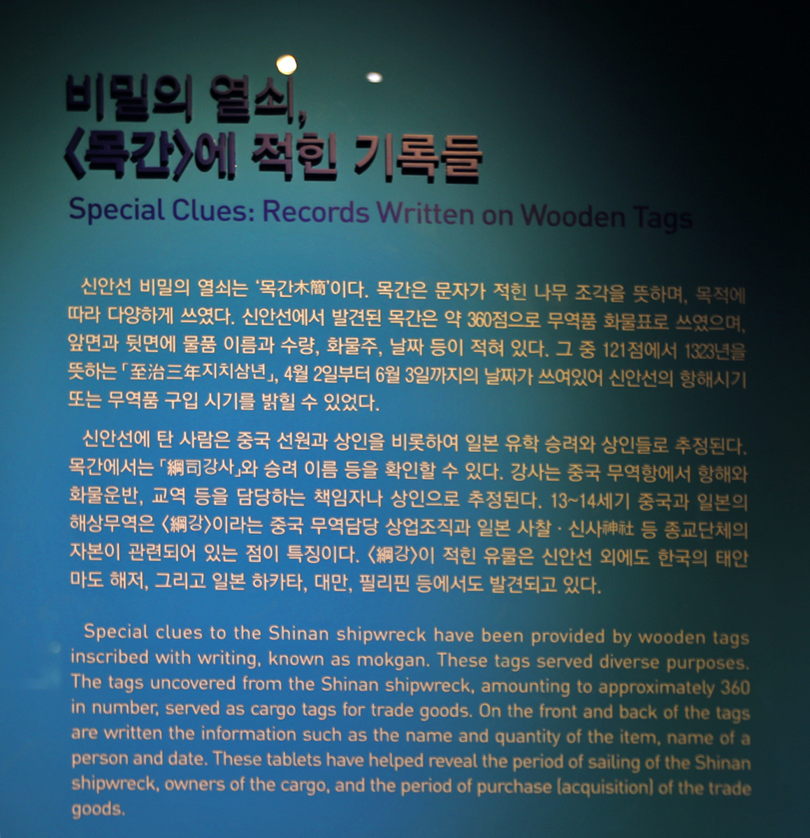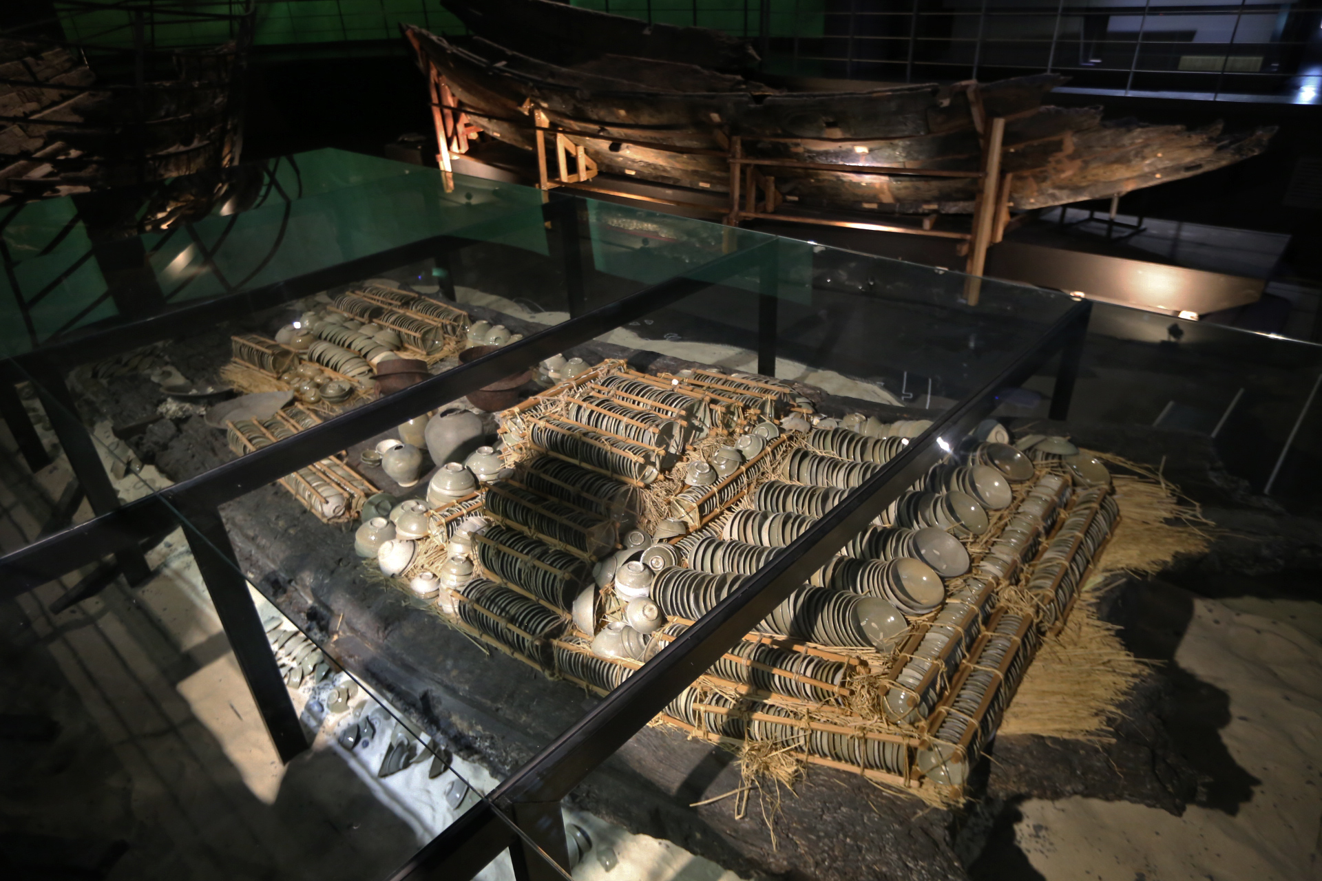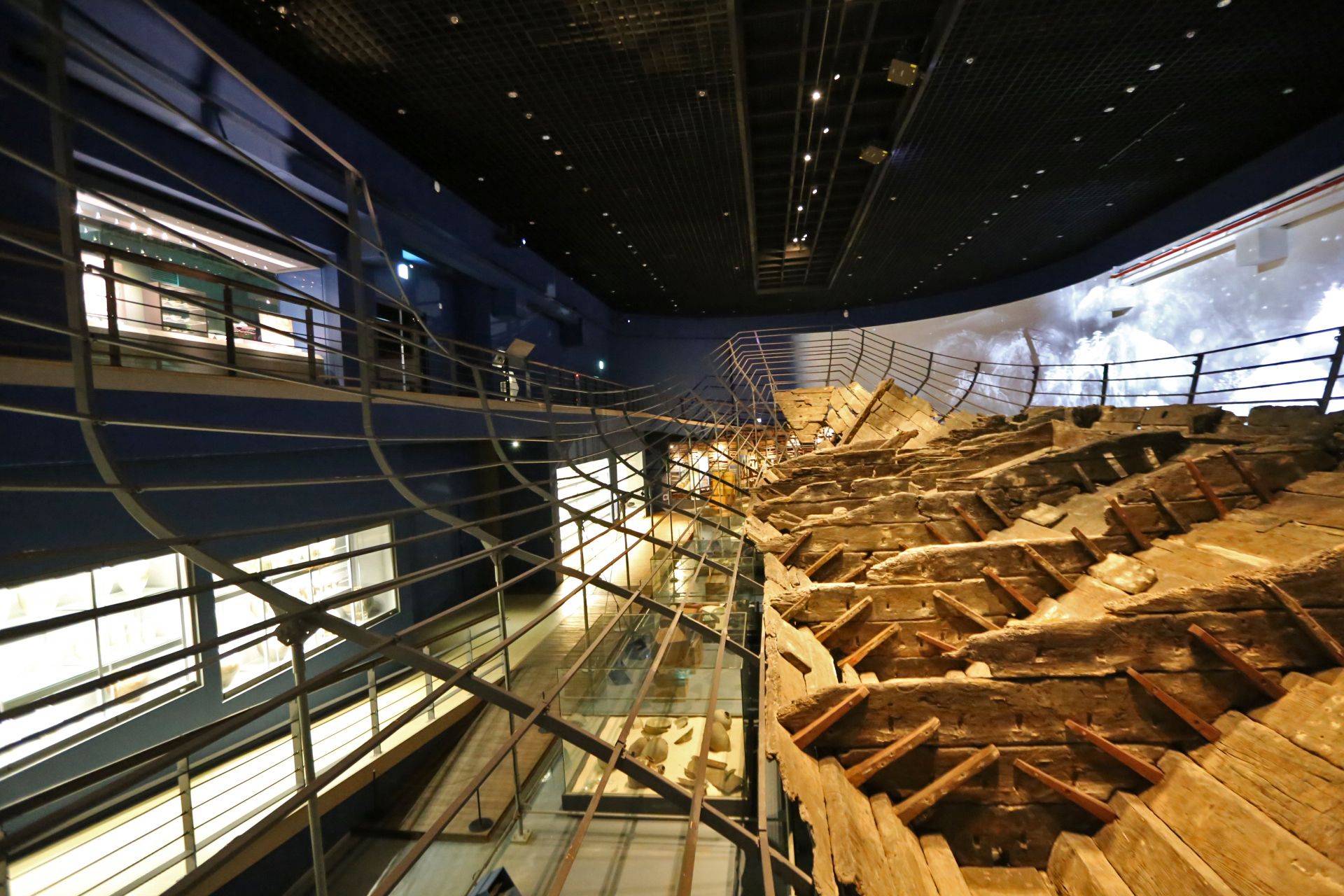 신안선 관람은 마치 아내와 나에게만 보여주기 위해서 특별히 문을 열어준 것이 아닌가 하는 생각을 하면서 관람하였다. 신안선 전시실에 들어가니 조금 후에 메인 전등이 켜진 듯하다. 바로 전에 있는 전시실에서 직원분이 신안선 전시실을 가리키며 들어가 보라고 했는데 워낙 관람객이 없으니 필요 할 때만 전등을 켜는지도 모르겠다. 하여튼 둘이서만 호젓하게 관람하였다.