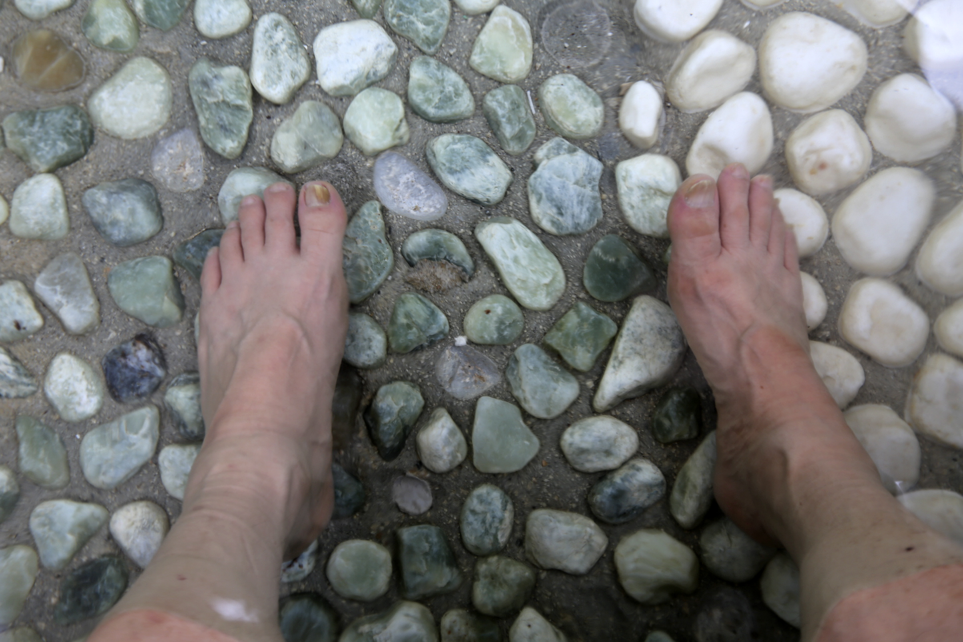 족욕장으로 들어가려고 신발과 양말을 벗고 들어가려고 하는데 주변 분들이 발을 닦고 들어오란다. 그러고 보니 발을 닦을 수 있는 수도시설과 족욕을 마치고 압축공기로 말리는 시설이 되어 있다. 처음이라 이런 절차를 몰랐을 뿐만 아니라 끝난 후 발을 손수건으로 닦을까 휴지로 닦을까 하는 이야기도 나누었었다. 10분 정도의 짧은 시간이지만 온천물에 발을 담갔다. 좋다!