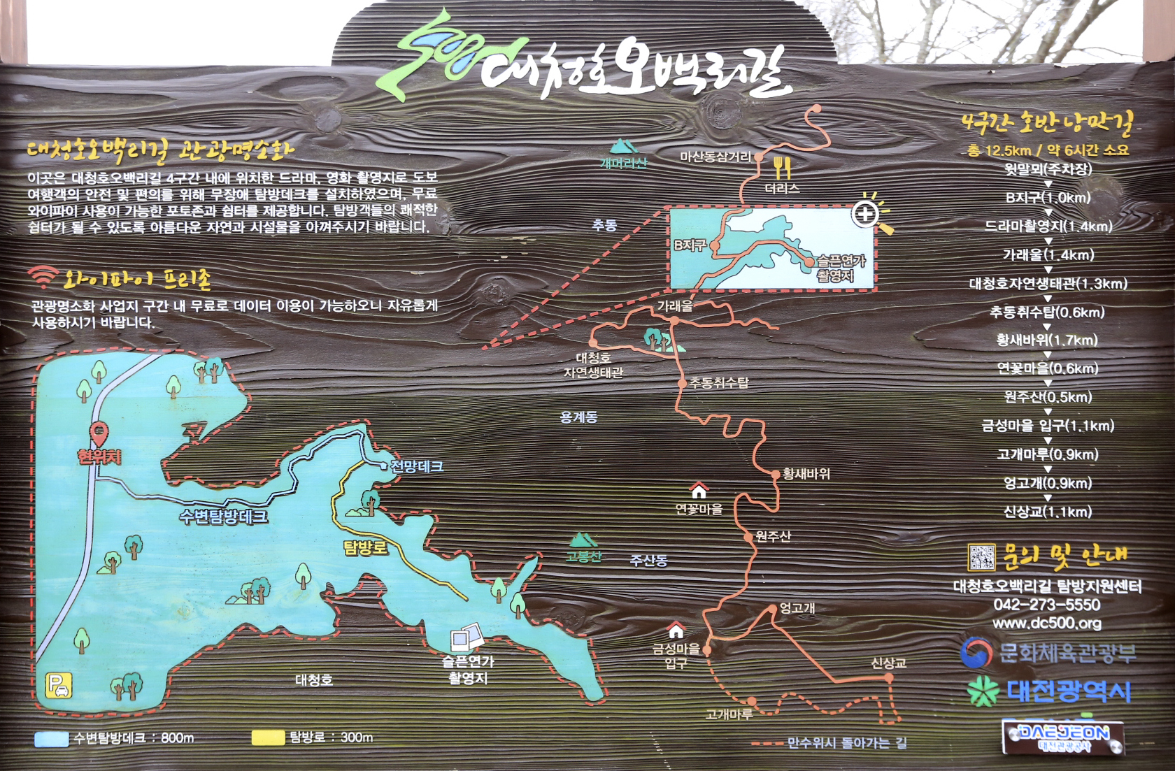 계획대로라면 점심을 먹은 후 바로 버스를 타고 계룡산동학사로 이동하는 것이었으나 대청호 주변의 탁 트인 경치에 끌려서 탐방로의 일부 구간을 걸었다.