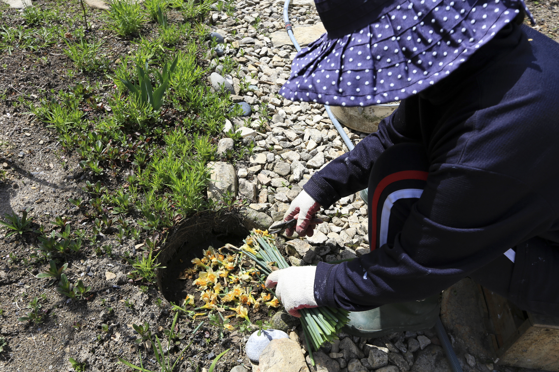 겹수선화는 이지 졌지만 홑수선화도 지기 시작한다. 진 꽃대를 잘라주어야 알뿌리가 튼실해 진단다.