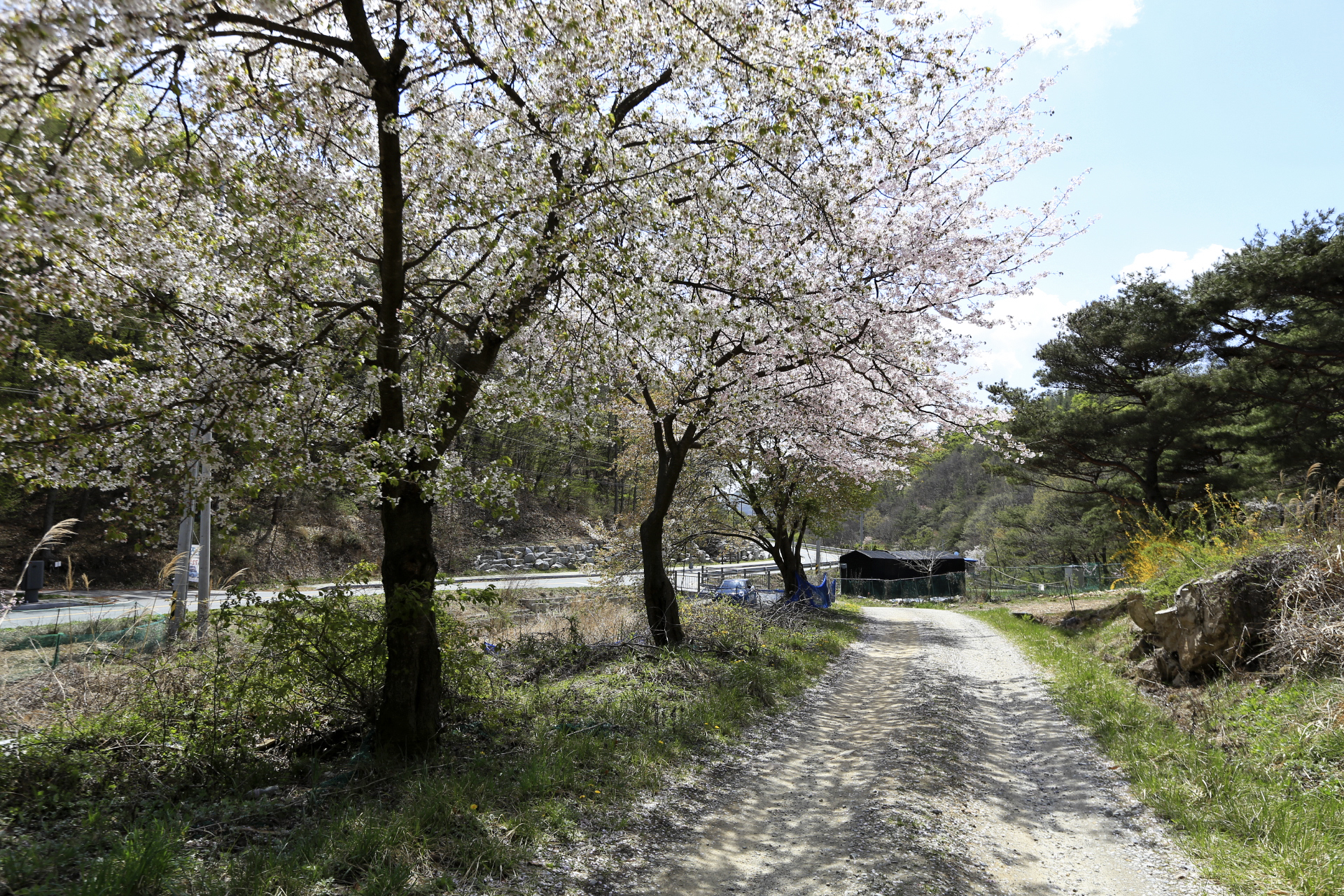 그저께 약수를 뜨러 왔을 때 보니 산벚꽃이 거의 져가지만 더 지기 전에 지나가 보기로 하였다. 전실공사에 전념하느라 봄이 지나가는 것도 모르고 있었다. 아깝다.