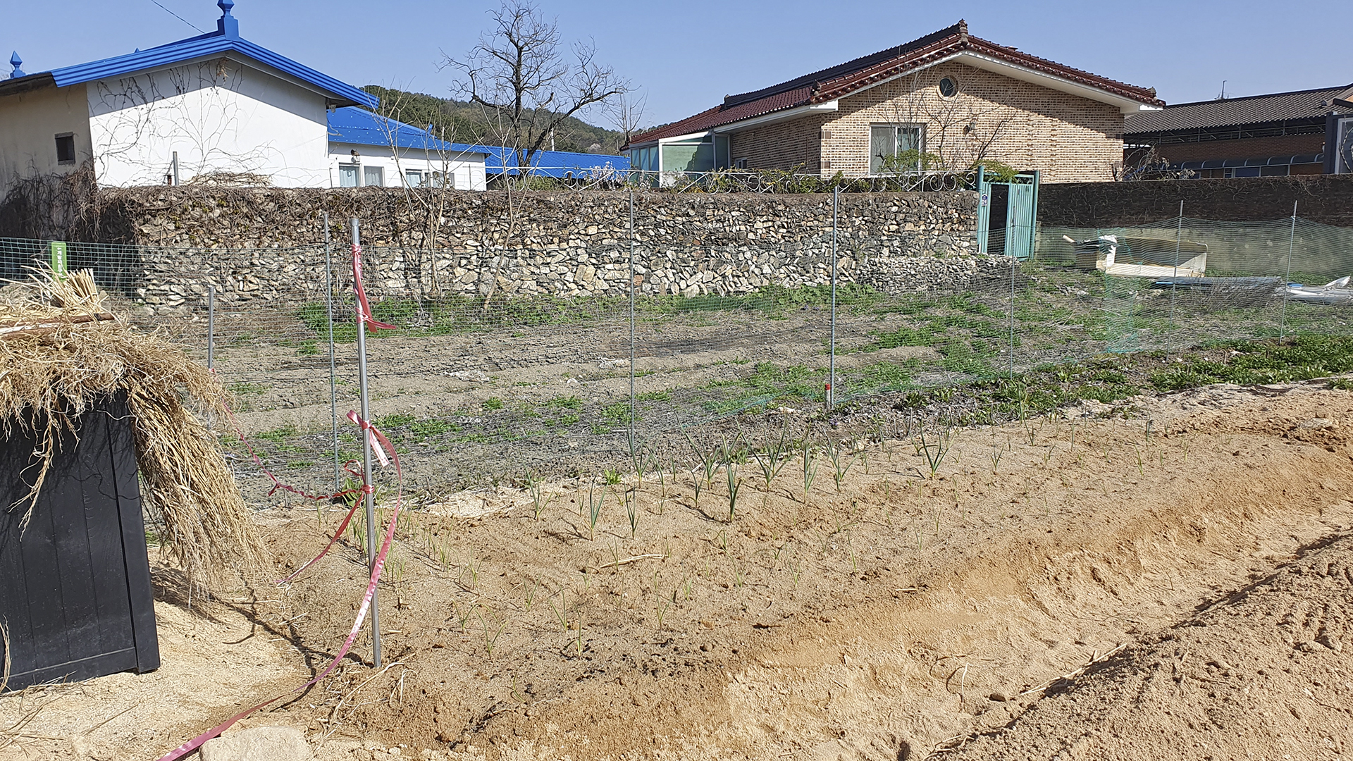 아내는 작년 늦가을에 마늘씨앗(주아)을 심어 겨울을 난 것 중에서 한 곳에 소복하게 몰려 있는 것을 띄엄띄엄 옮겨 심었다. 그래도 괜찮은지는 모르겠다. 다른 분들이 농사지은 마늘밭은 많이 자랐던데 무슨 이유인지는 몰라도 시원찮다.
