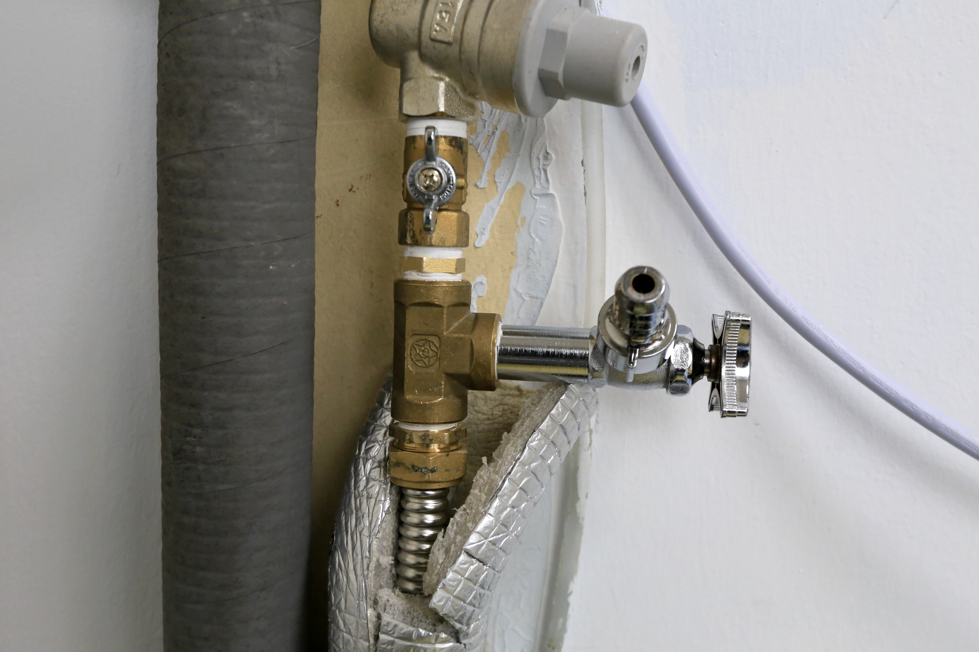 세탁기용 수전을 분기할 부분의 기존 상태