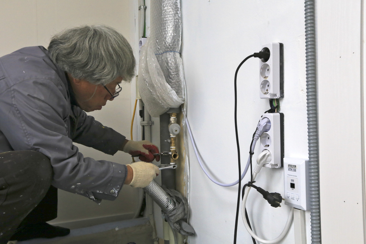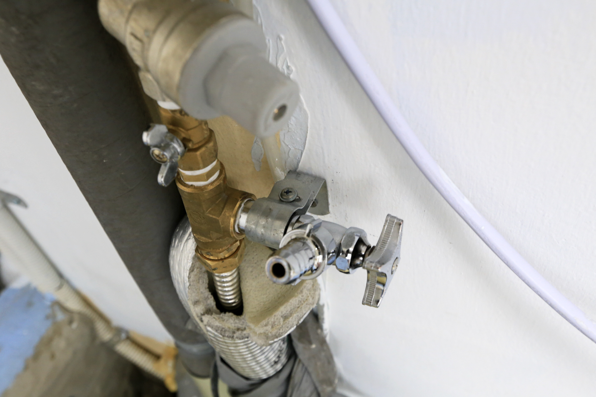 앵글밸브를 벽체에 견고하게 고정시켰다.