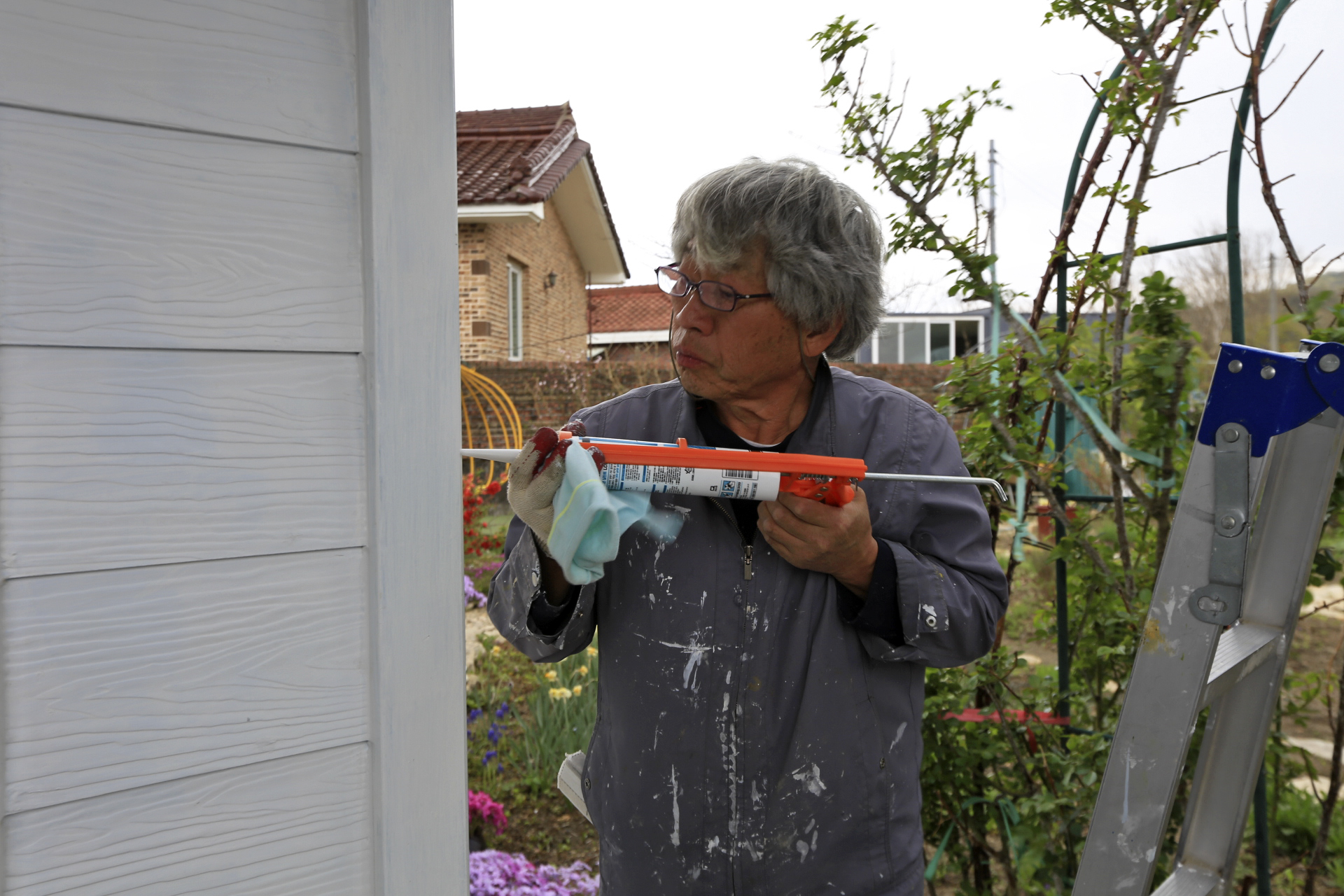 전실공사 중에서 목구조체와 벽체 및 천장과 지붕 등 최종 마감공사를 제외한 주요공사는 김ㅇ구가 담당하였다. 소규모현장에서 자재를 절약하는 방법을 배운 기회였다. 젊은 시절을 건설현장 기술자로 근무하였으니 기능인처럼 직접 일을 하지는 않았으나 관심분야는 같았기에 한 가지 공종을 완료하고 다음 공종으로 가는 것이 아니라 자재의 쓰임에 따라서 공사 순서가 바뀌기도 한다. 예를 들어 처마홈통을 설치 할 때 쓴 코킹이 남으면 외벽몰딩 코킹작업을 하고, 내부코킹을 하고 남은 코킹도 외벽몰딩 코킹작업을 하는 방식이다. 이번 공종에서 남은 코킹은 버리고 다음 공종에서 새 코킹을 사용하는 것이 아니라 코킹 을 다 쓸 때까지 코킹이 필요한 공사를 연결하여 하는 것이다.