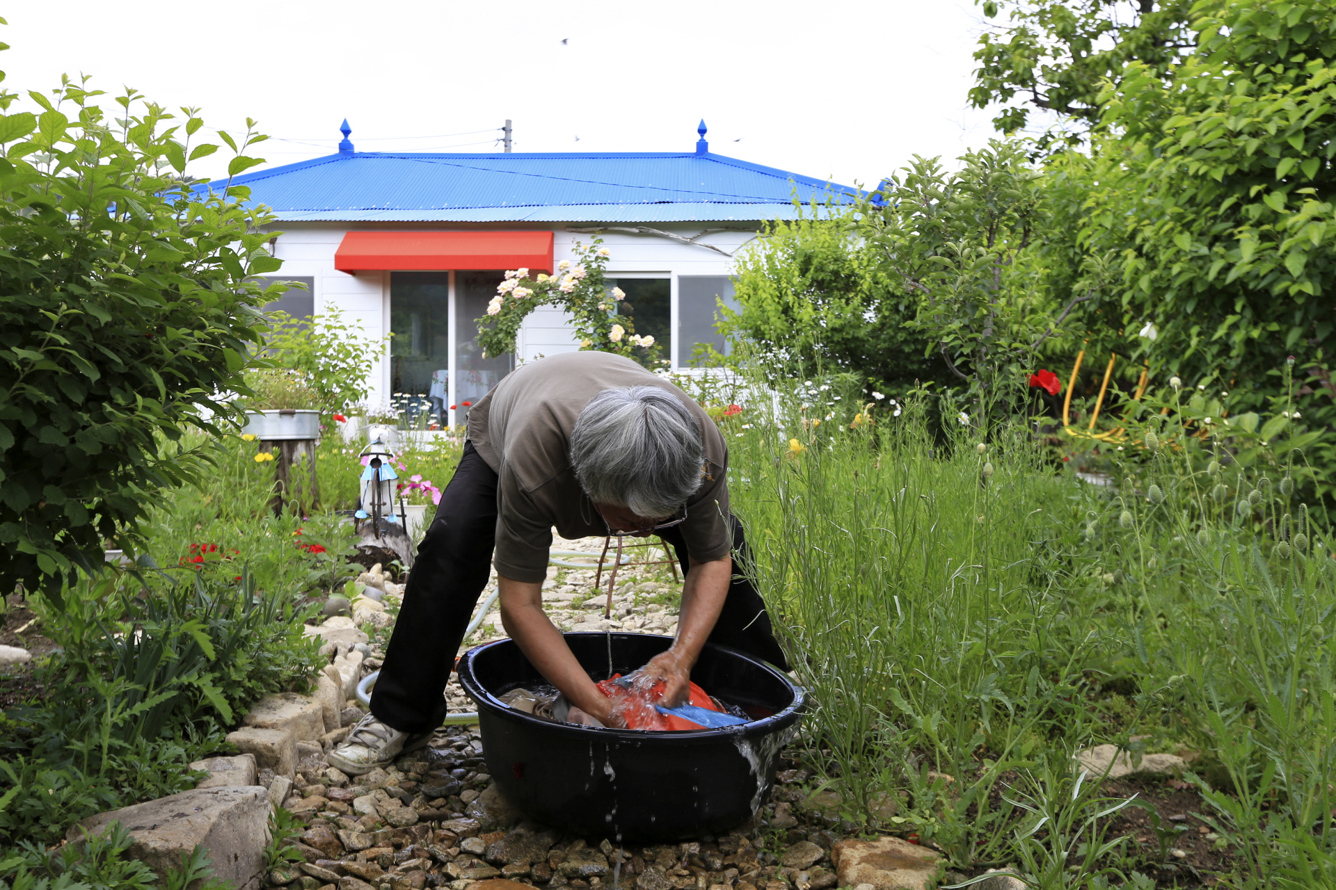 ■ 20230429 (성북동집 : 50박51일 : 혼자 와서 둘이 지내다 혼자 서울행 : 467km) -~- -앞밭 풀뽑기+큰방 정리 및 텐트 철거+텐트 세탁+텐트 재설치 및 전기 설치+달맞이꽃 개화(0526)- -작은방 정리+진잠(H마트/생필품)(0527)- -작은방 정리+다락방 정리+행가 설치+작은집 식구들 맞이(Seung의 첫 성북동행)+온종일 비(0528)- -오전까지 비(누적 63.3mm)+둥구나무거리 산책(Jun과)+작은집 식구들 떠남+청경채 파종+앞밭 풀뽑기+모기물림(금년 최초)(0529)- -앞밭 풀뽑기+토마토넝쿨 묶어주기+진입로 배수관 주변 보완+홀목골 윤ㅇ환(열무)(0530)- -앞밭 토마토 및 오이 및 가지 및 고추 요소비료 주기+장미 꽃대 제거+접시꽃 개화+나리꽃 개화(0531)-