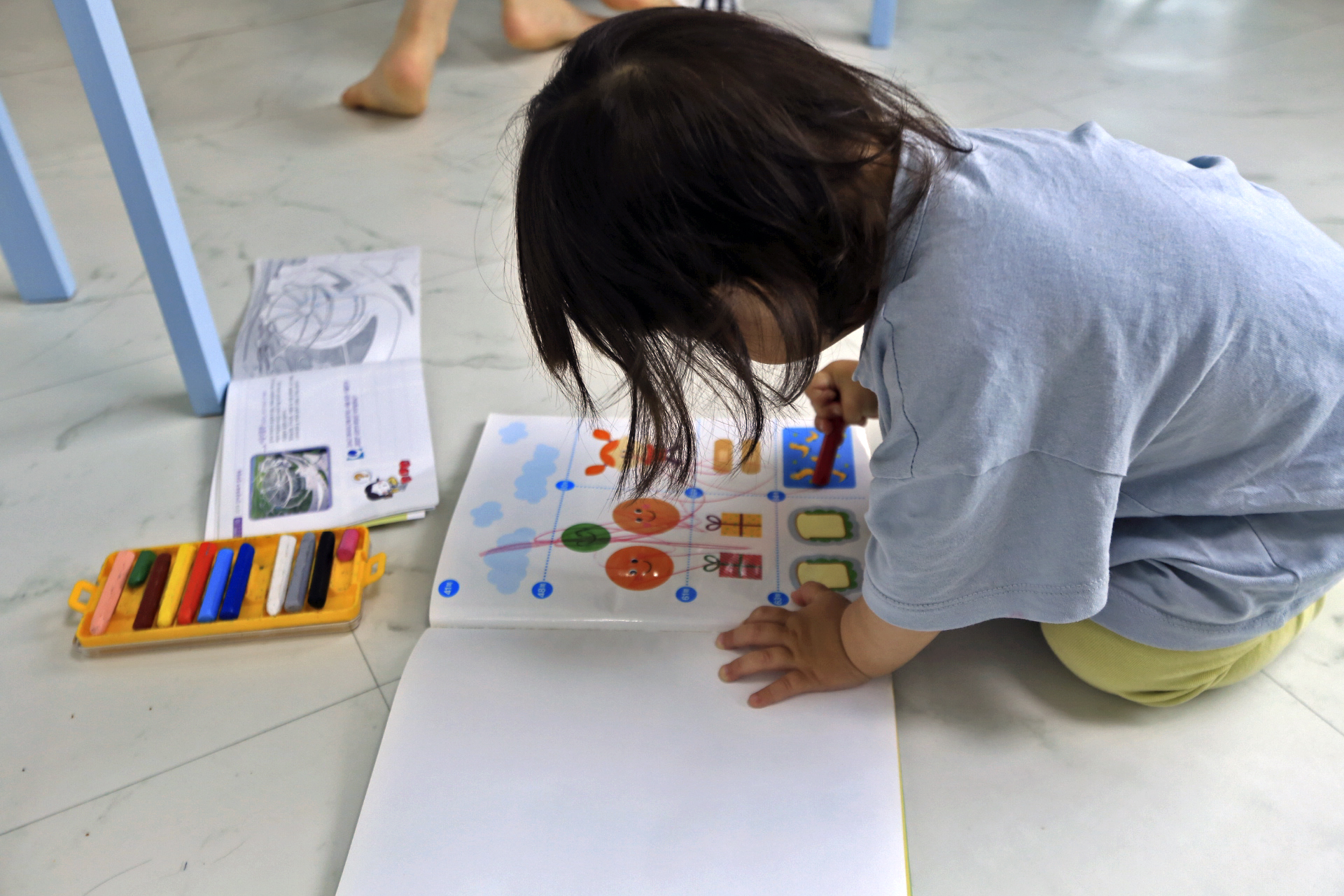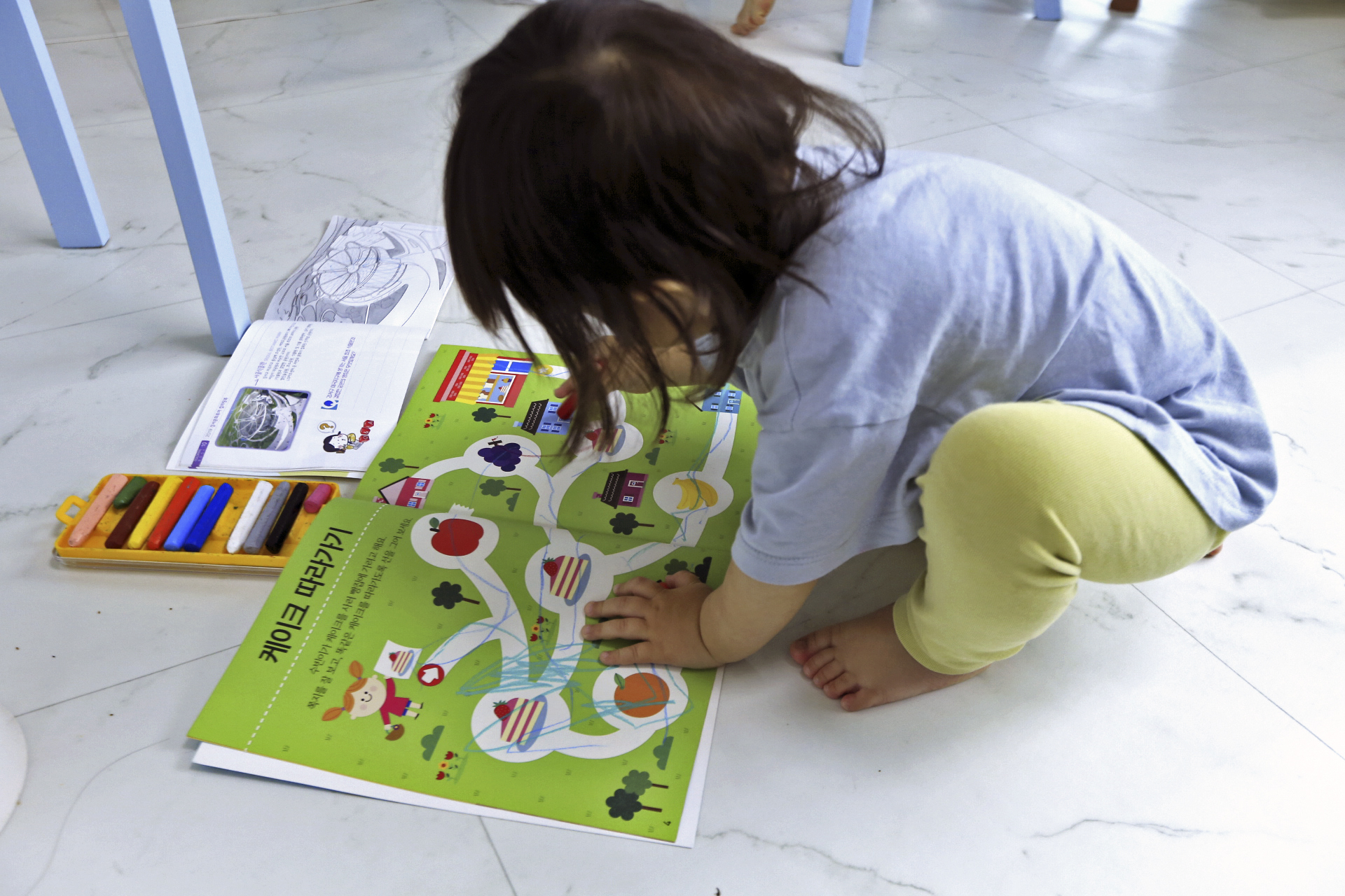 크레파스로 마구 그려댄다. 나름 뭔가 생각하고 그리지 않을까?