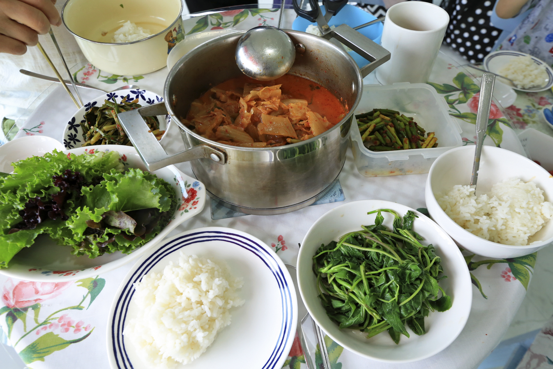 앞밭에서 할머니와 같이 따 온 상추쌈....