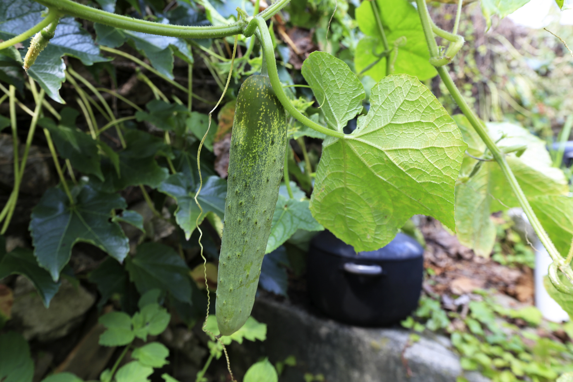 앞밭의 오이는 줄기가 대부분 말랐는데 뒤꼍에 심은 오이는 아직 싱싱하다.