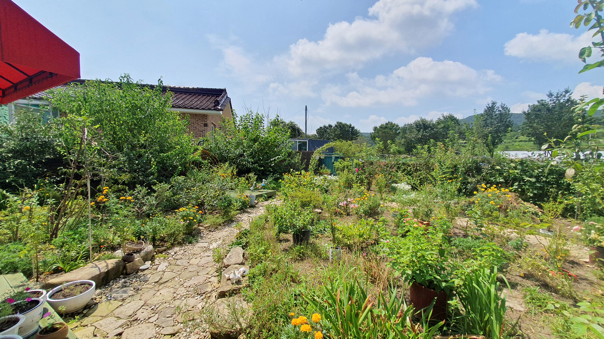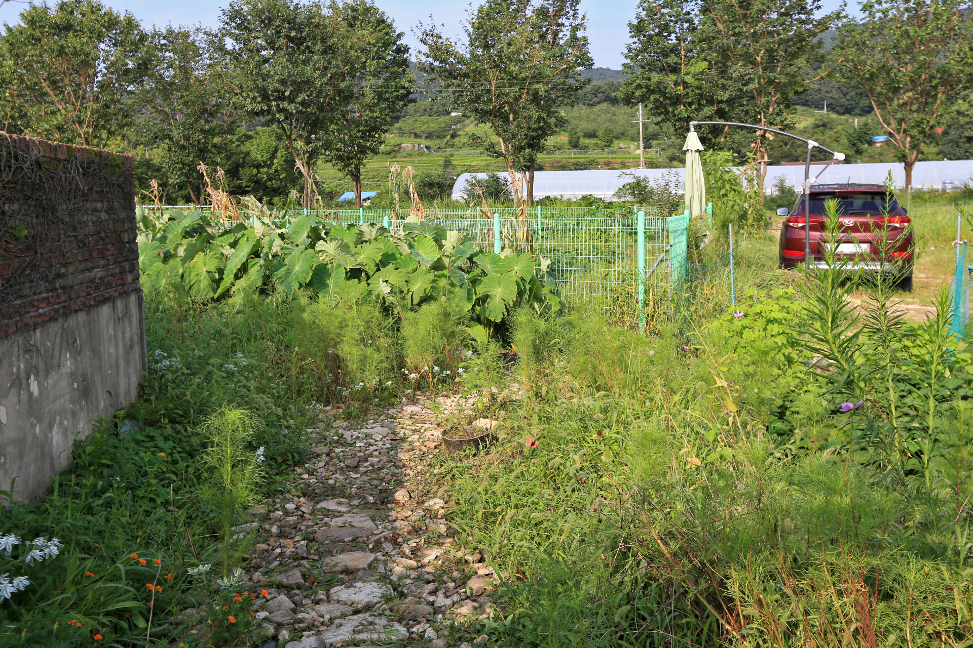 앞밭은 풀을 뽑고 돌볼 형편이 못되어 포기하고 도로에서 집을 연결하는 통로의 풀을 뽑거나 낫으로 베어주었다.