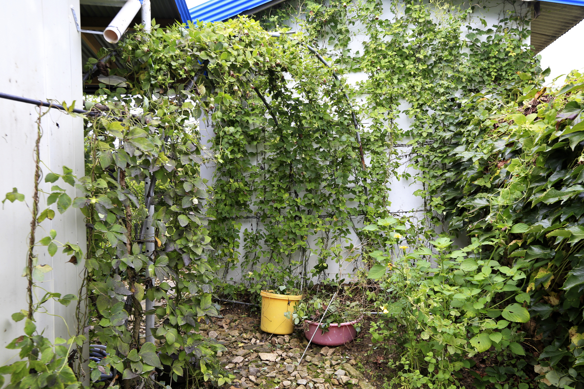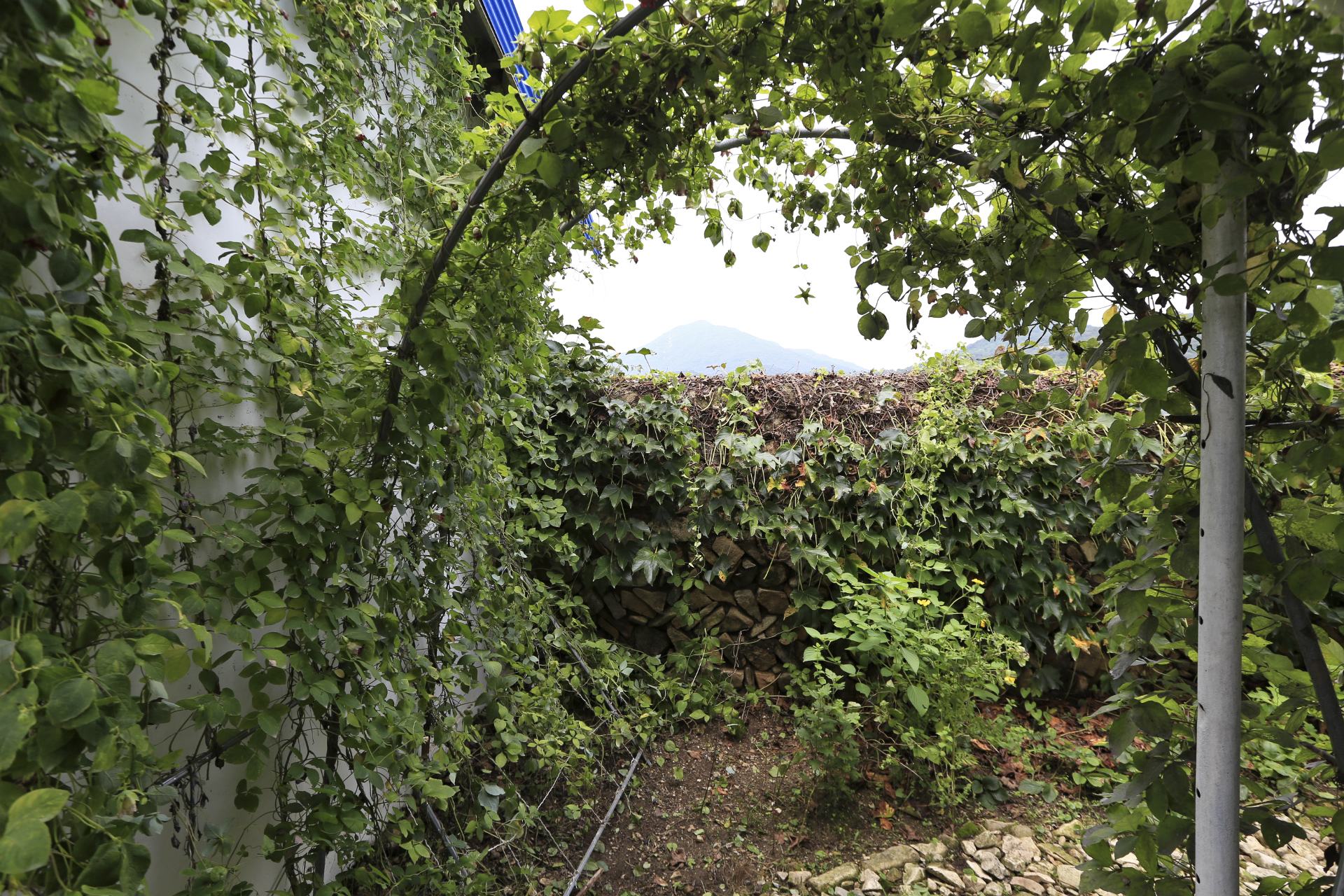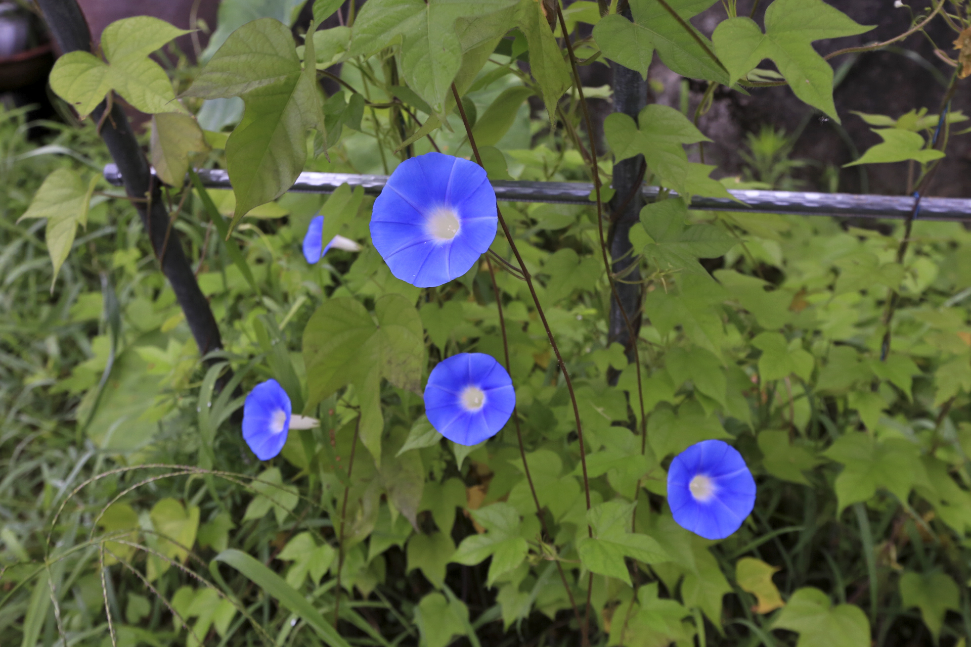 대문 앞 아치의 한 쪽은 찔레를 올렸는데 올 봄에 찔레꽃이 볼만하게 풍성하였다. 대문을 출입할 때 거리척거리는 찔레 줄기는 잘라주었다. 반대쪽에는 해마다 풍선넝쿨을 올렸는데 아내가 병원에 입원하게 되어 집을 비워서 돌보지 못한 틈에 풍선넝쿨 대신 나팔꽃이 차지하였다. 나팔꽃은 이른 아침에 피었다가 10시 이전에 지는 것이 흠이다. 서울 발산동 지인분이 꽃은 볼 틈이 없고 씨만 다닥다닥 달린다는 말처럼 일찍 진다. 아침에 꽃을 보기는 하였지만 카메라를 들고 나갔을 때에는 이미 지고 말았다.