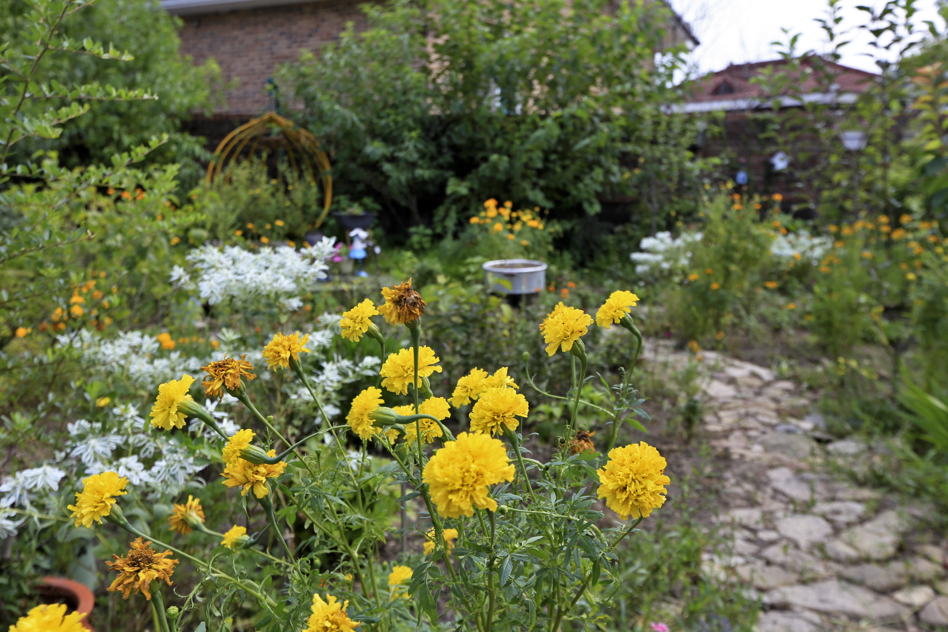 지난주에는 꽃밭이 썰렁했는데 이번 주에는 메리골드가 많이 피어서 꽃밭 분위기가 느껴진다.
