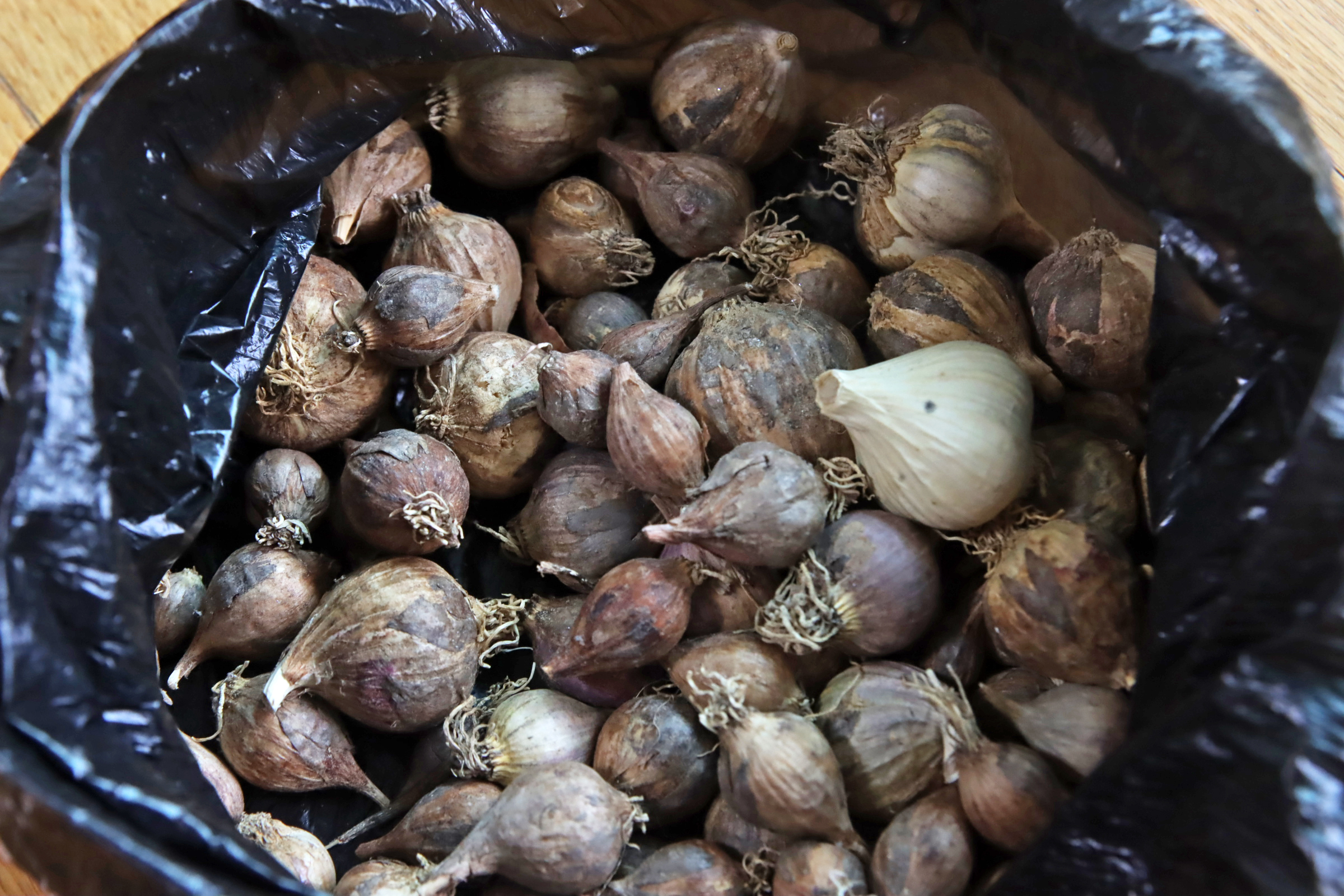 전에 수확한 마늘을 모두 서울집으로 가져왔다. 자잘하지만 주아(마늘씨앗)를 2년차 수확한 것이기에 통마늘도 있다. 내년에는 포기하고 그냥 쪽마늘을 심을까 한다.