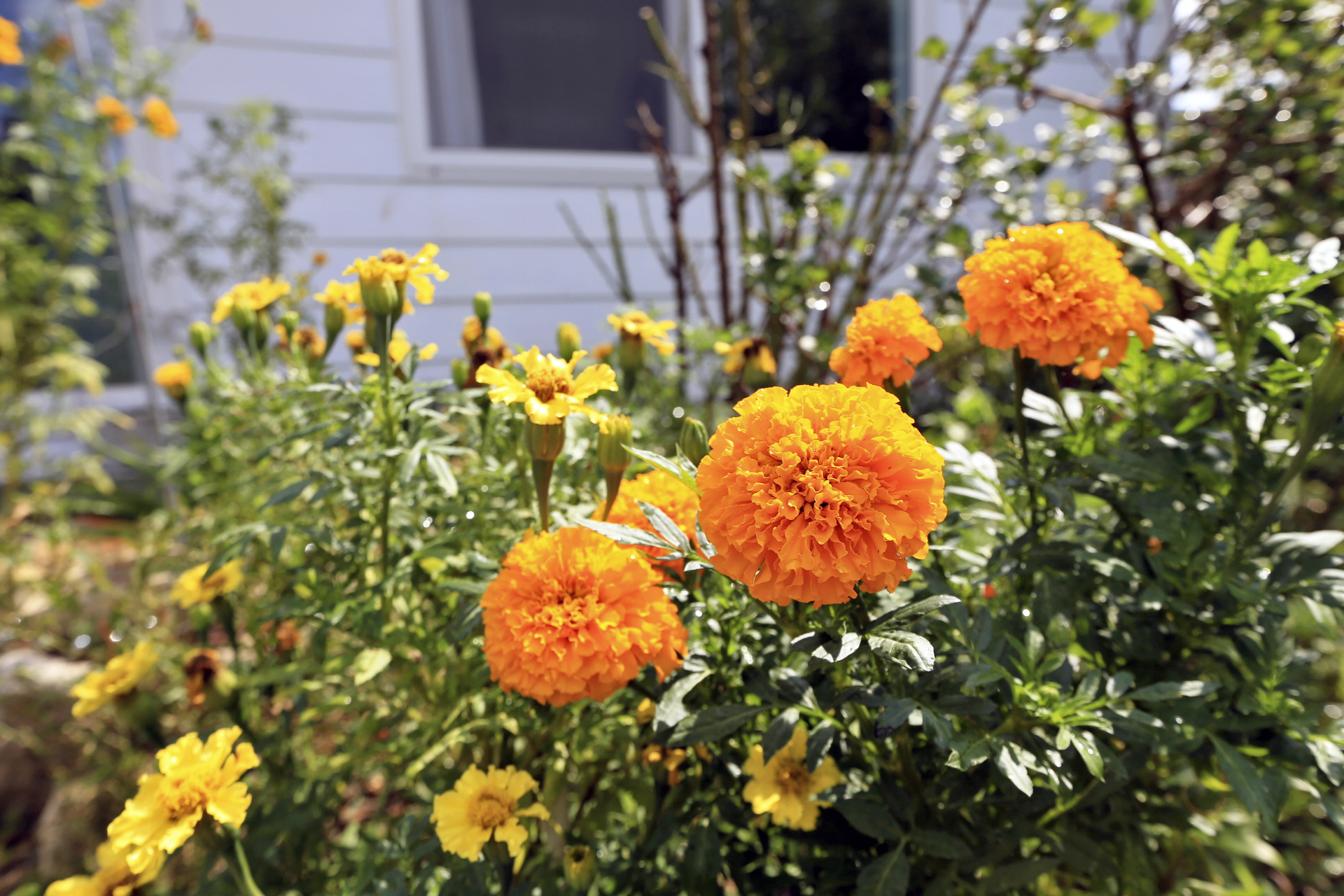 화분에 따로 심어 놓았던 메리골드는 화분 두 개를 제외하고 모두 꽃밭에 옮겨 심었다.