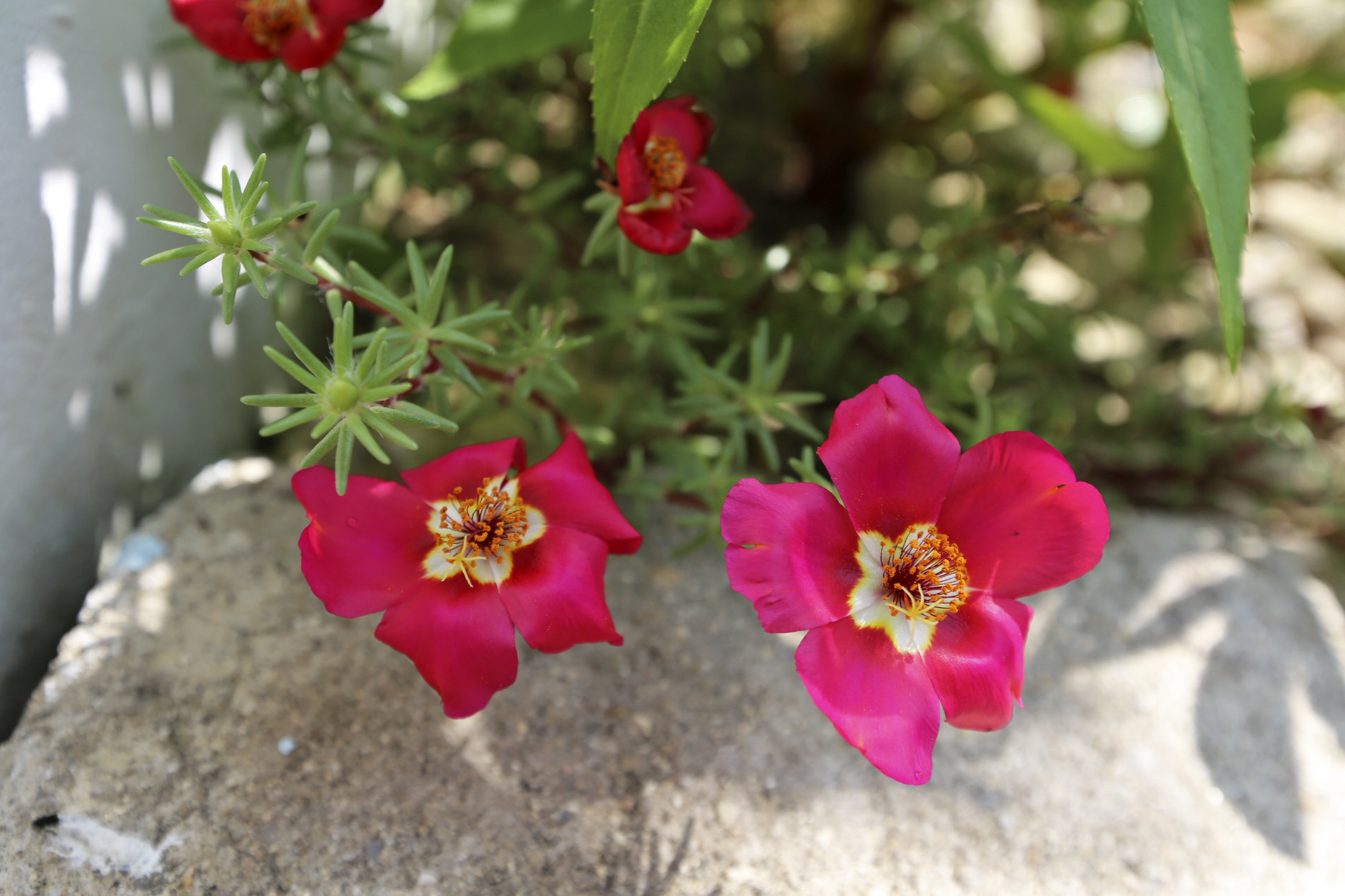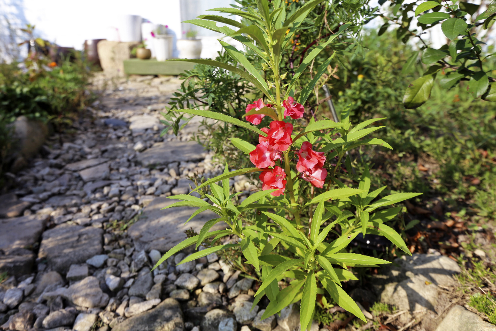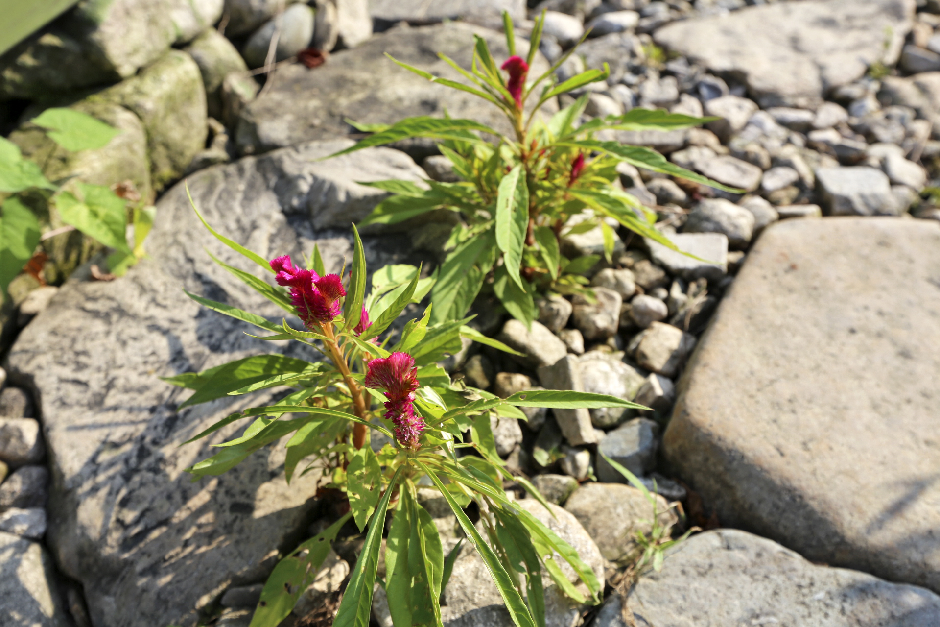 맨드라미가 하필이면 통로 돌 틈에서 돋아나서 꽃을 피웠다.