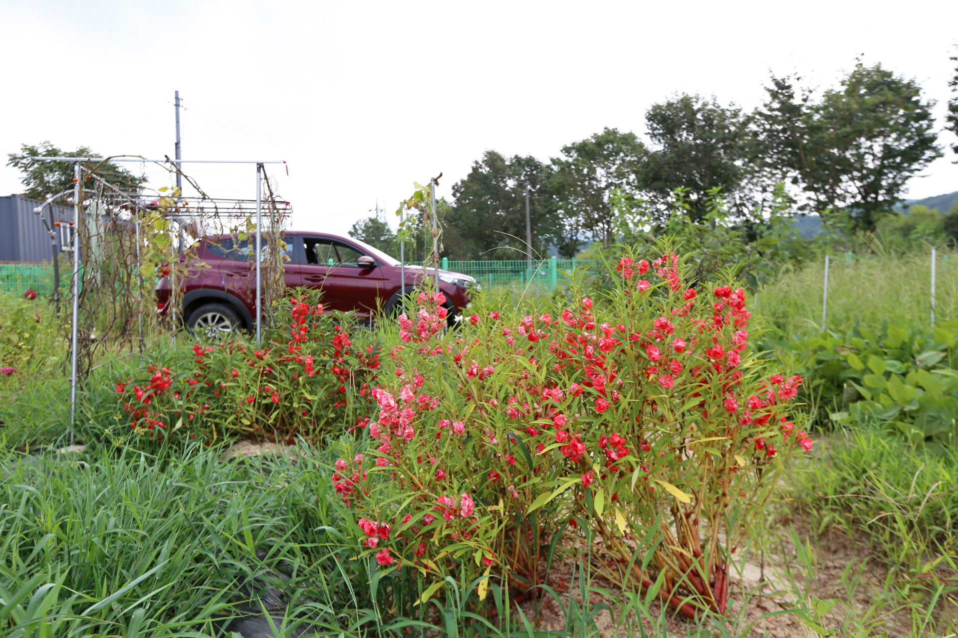 서울집으로 출발하기 직전인데 아내가 그냥 두면 시들 것이라며 전지가위로 백일홍 꽃을 잘라낸다. 전지가위도 차에 싣고 출발하였다.
