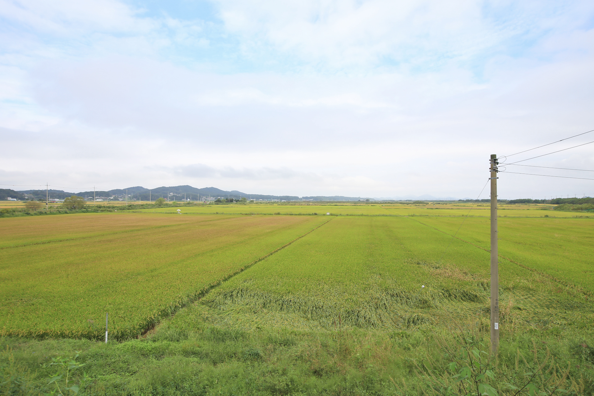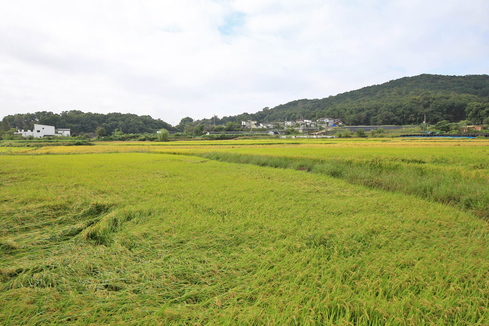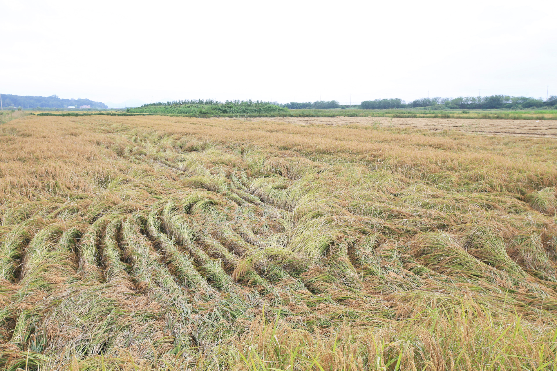벼가 바람 피해를 많이 받았다.