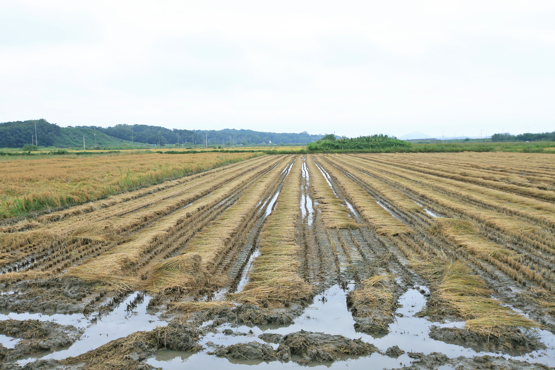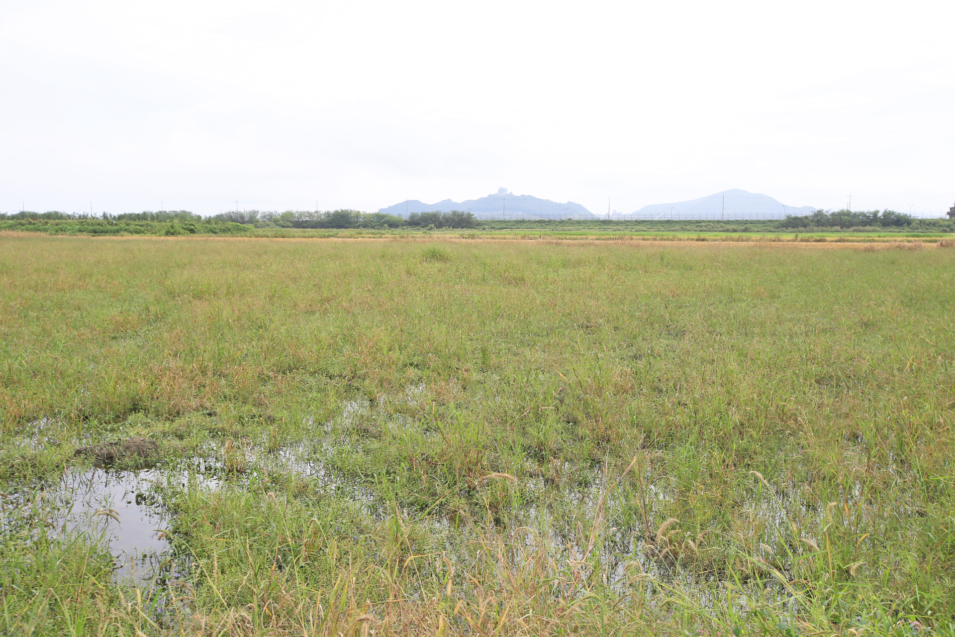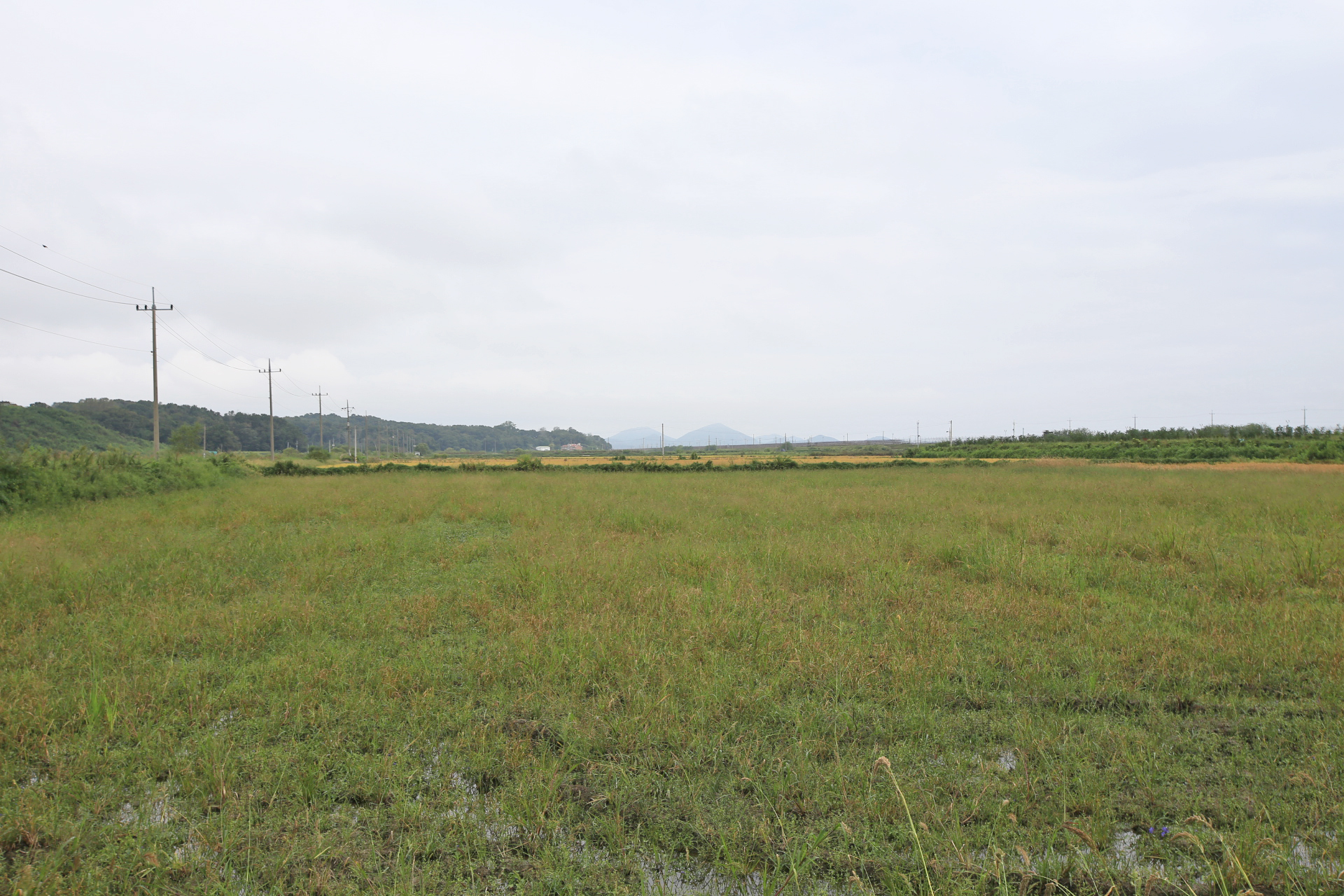 이 논은 올해 농사를 짓지 않은 듯하다. 멀리 북한 땅 개성 방향으로 산이 보인다.