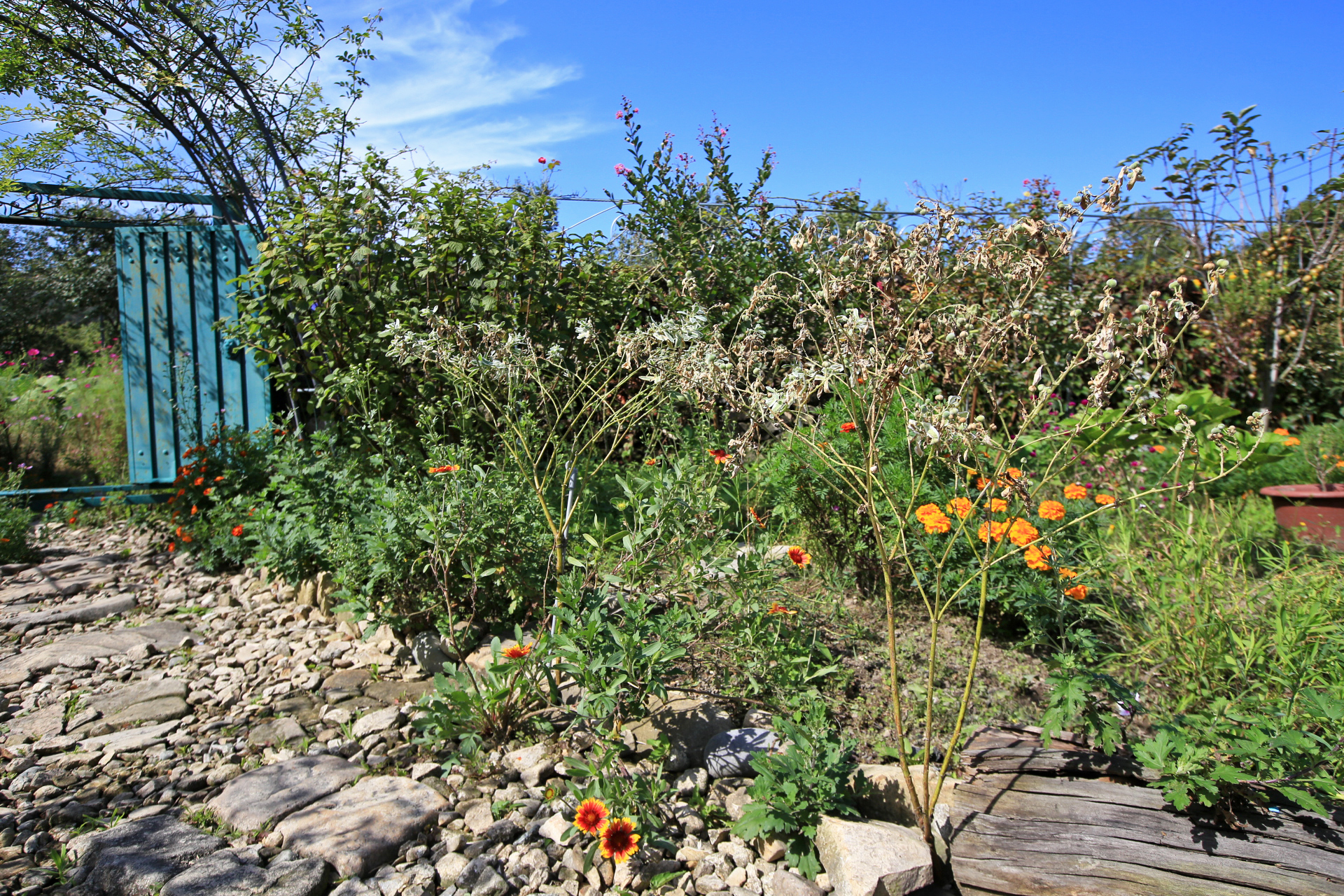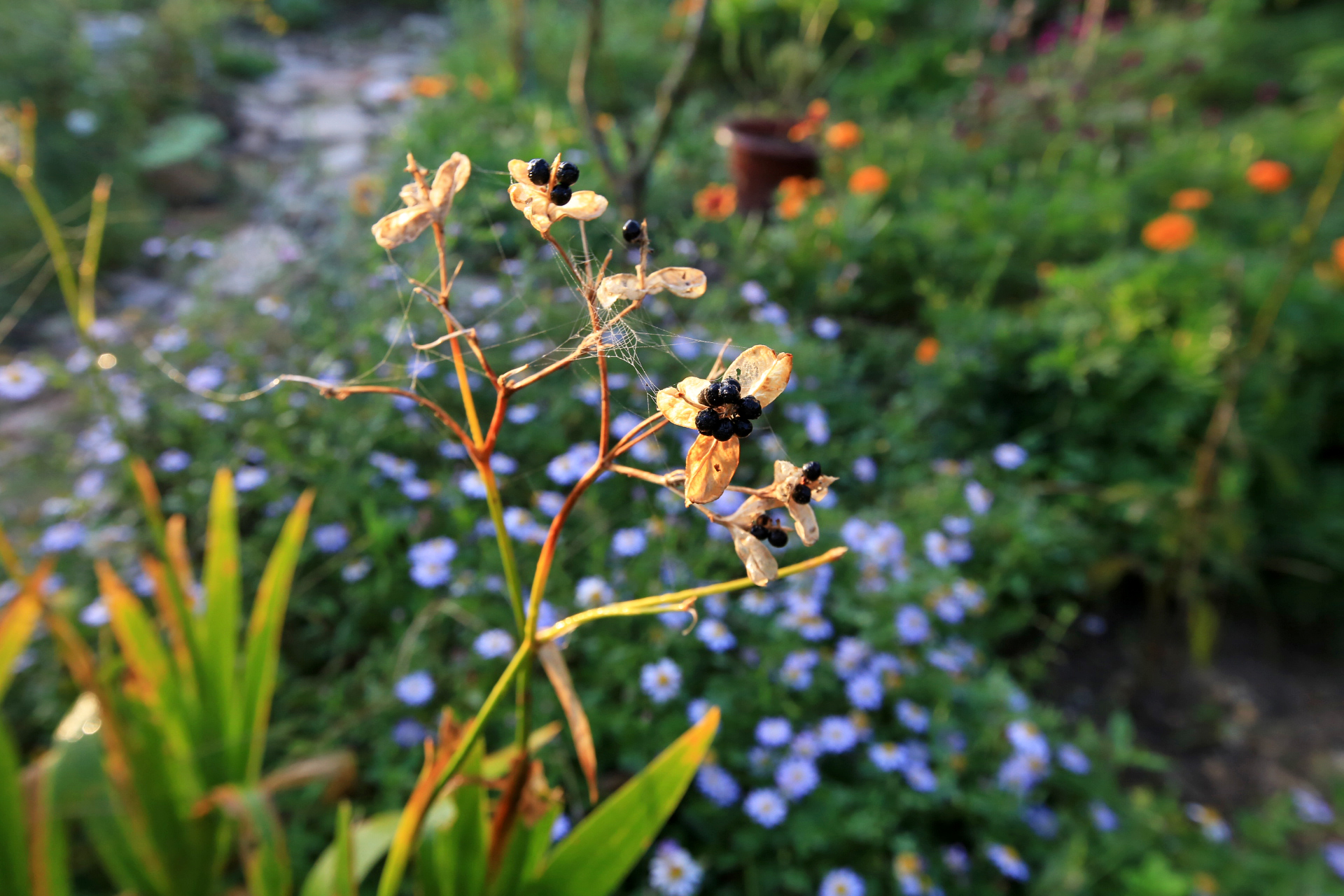 성북동집에 다녀간 후 6일 만에 다시 왔는데 울안 꽃밭은 별로 달라진 것이 없어 보인다. 유난히 무더워서 끝나지 않을 것 같던 여름이 물러나니 하늘색이 달라졌다. 어느새 밤에는 썰렁하여 여름 이불을 덮기에는 춥다. 아침나절에는 모기도 덜 달려들고 한낮에도 일 할 만 할 정도로 기온이 내려갔다. 식물이 왕성하게 자라던 한여름이 지나니 풀도 자라는 속도가 느려진 듯하다.
