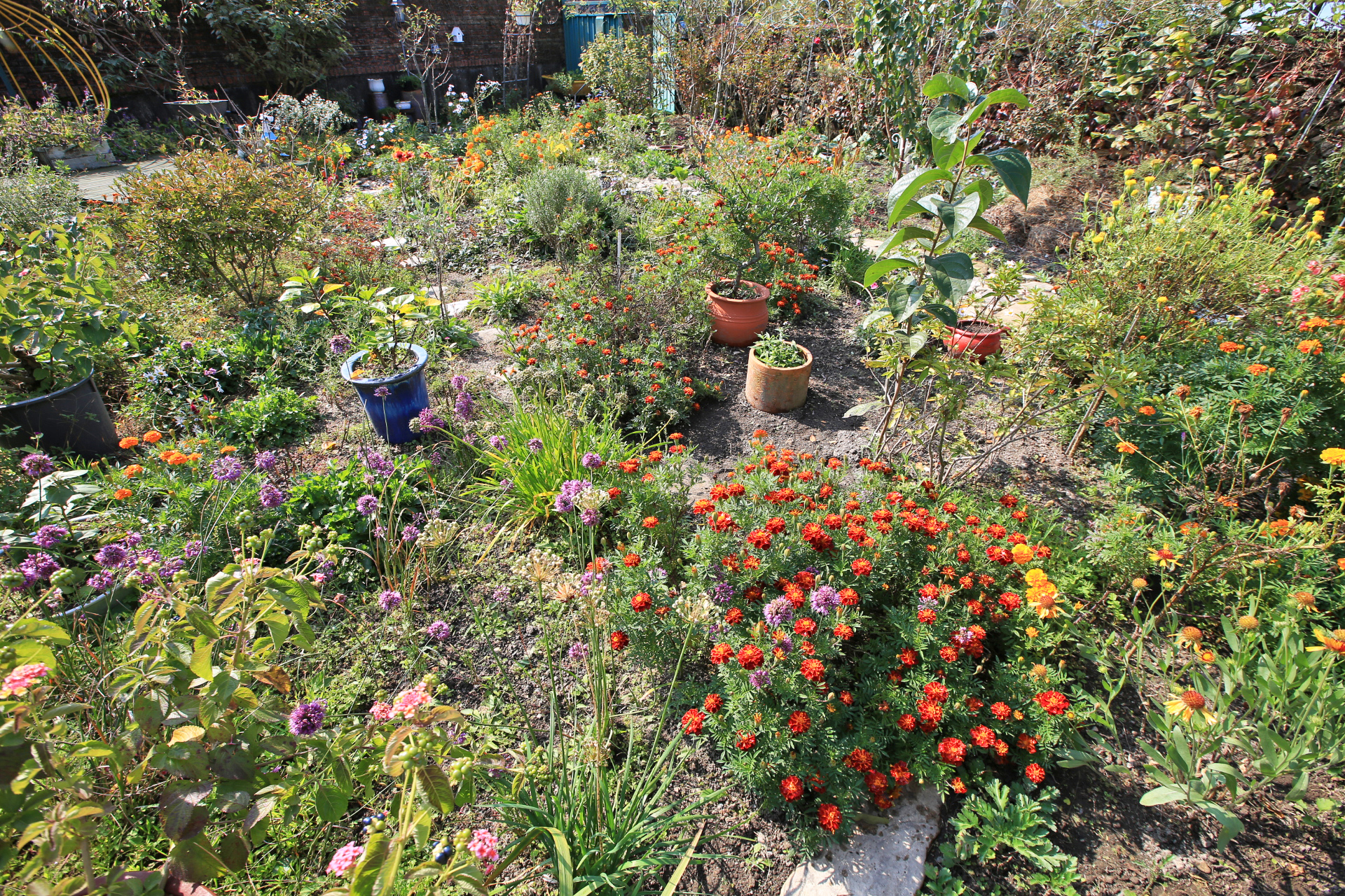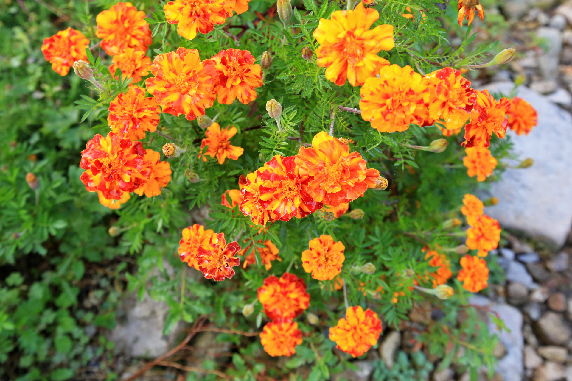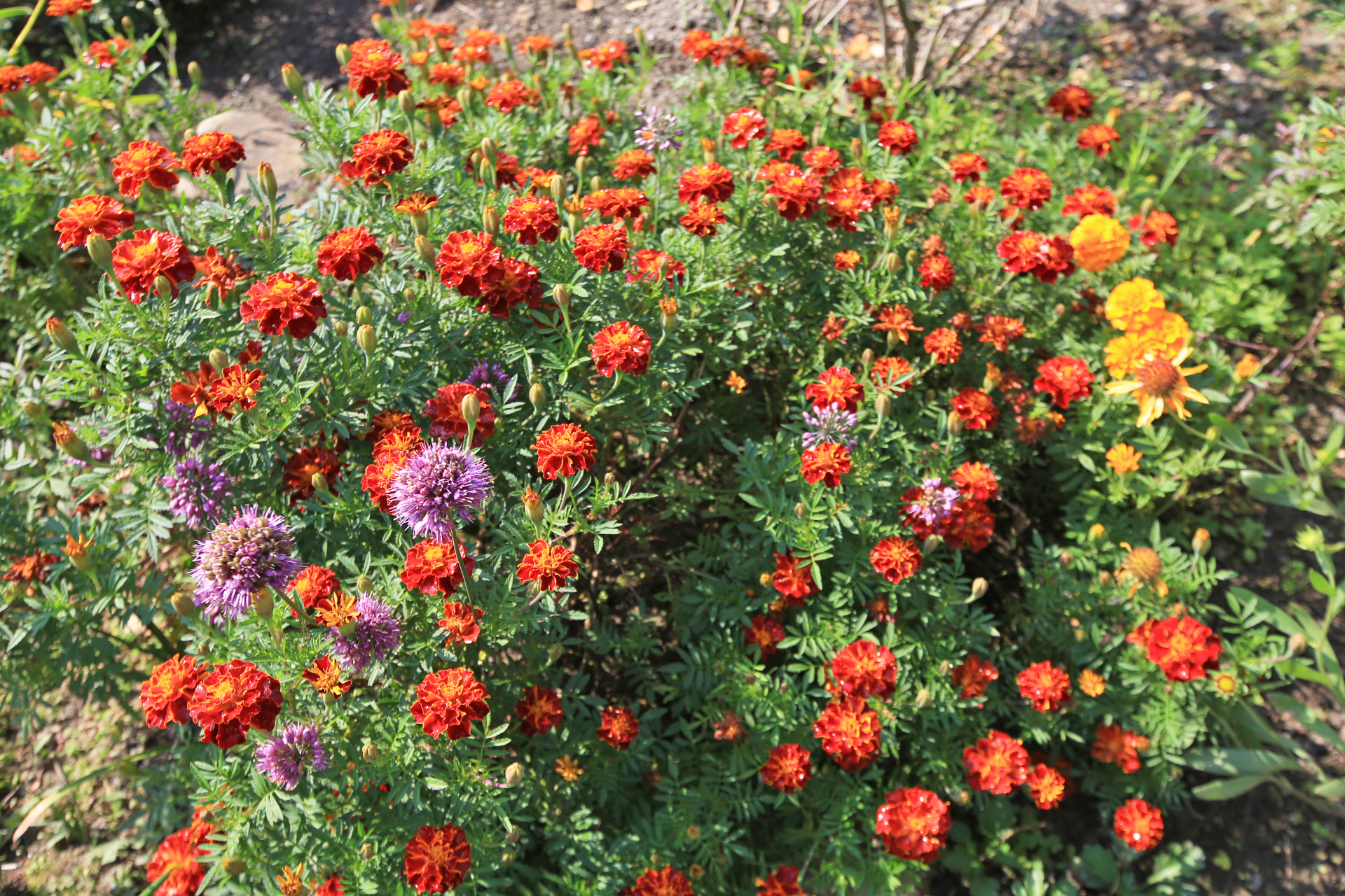 메리골드는 일찍 핀 것은 이미 꽃대가 시들어서 뽑아냈지만 늦게 새싹이 돋아난 것은 이제야 꽃봉오리가 생기는 것도 있다. 시간차를 두고 계속 새로운 꽃이 피어나는 것이 메리골드의 장점이랄까? 요즈음 메리골드가 꽃밭을 돋보이게 하는데 큰 역할을 하고 있다.